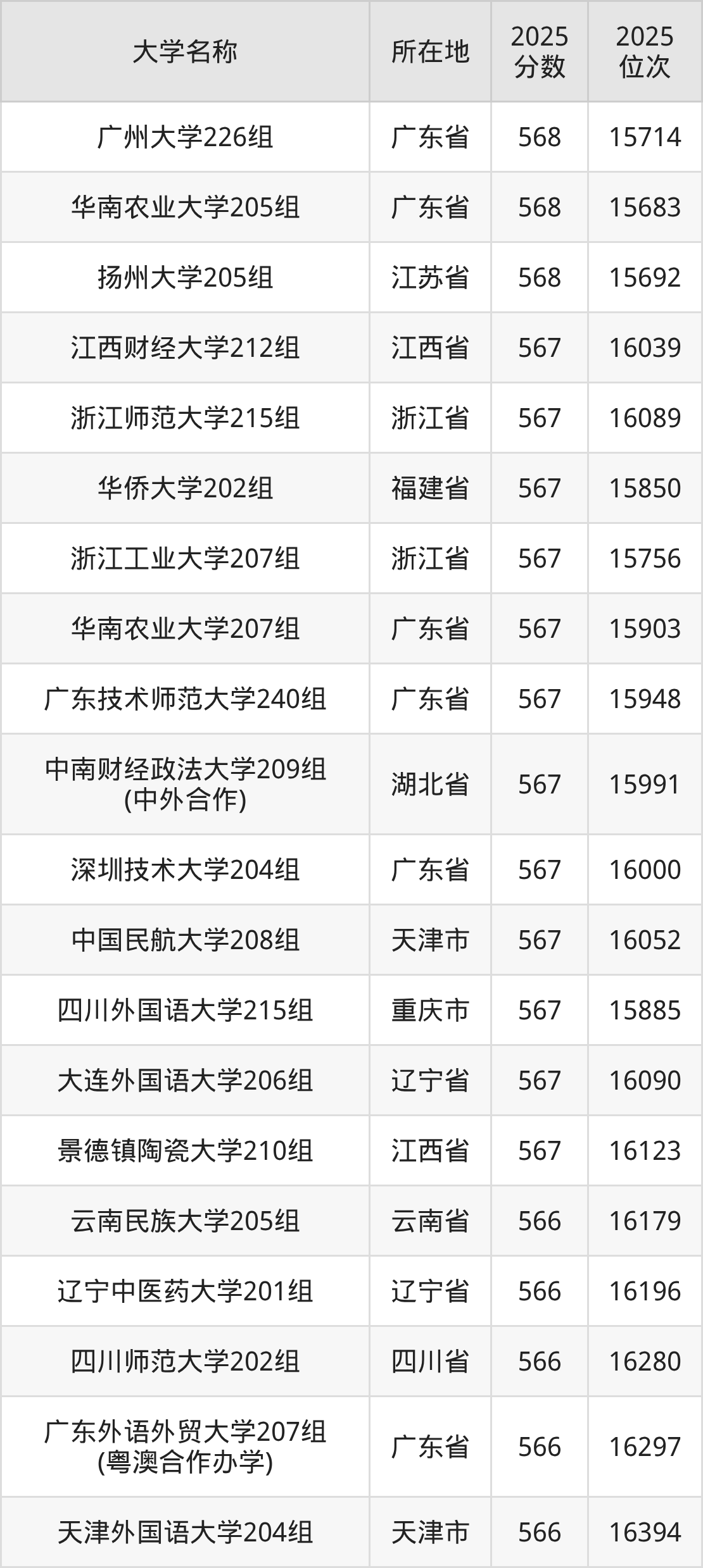 小编依据圆梦志愿平台提供的全国高校在广东省招生录取数据,精心筛选并整理了针对2026年广东考生的一份重要参考:列出了2025年录取位次接近广东省第16000名的大学清单。
