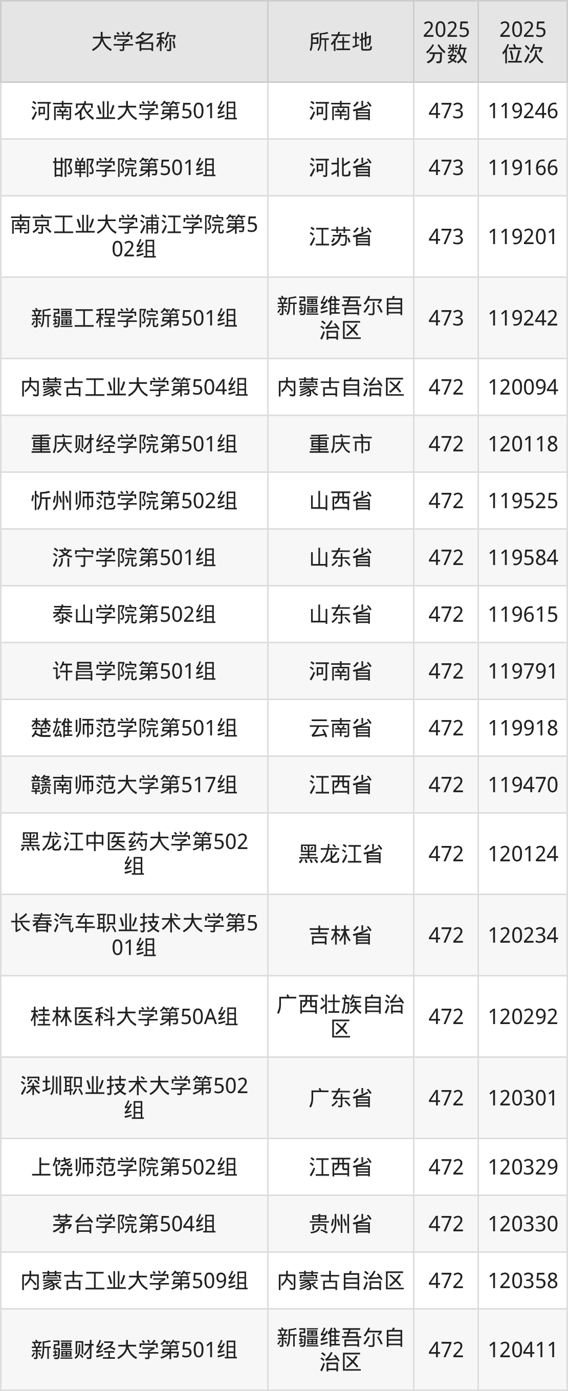小编依据圆梦志愿平台提供的全国高校在江西省招生录取数据,精心筛选并整理了针对2026年江西考生的一份重要参考:列出了2025年录取位次接近江西省第120000名的大学清单。