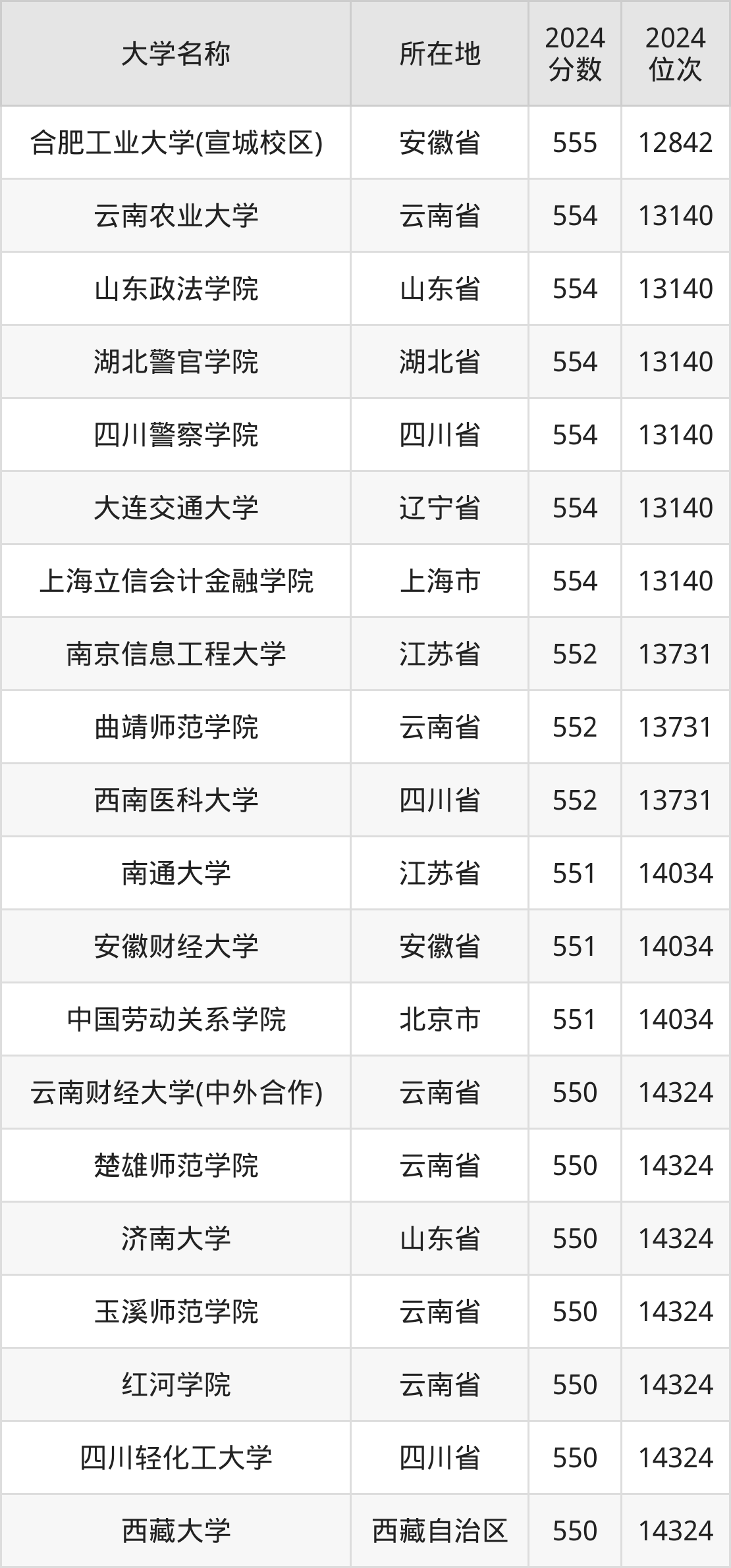 小编依据圆梦志愿平台提供的全国高校在云南省招生录取数据,精心筛选并整理了针对2025年云南考生的一份重要参考:列出了2024年录取位次接近云南省第14000名的大学清单。