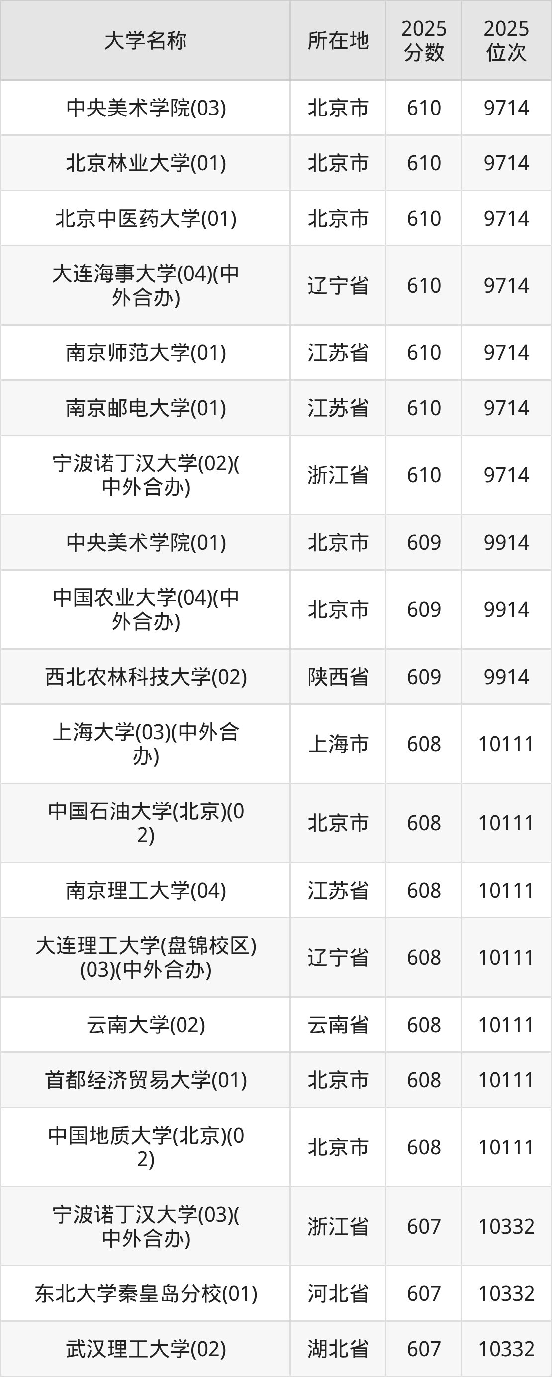 小编依据圆梦志愿平台提供的全国高校在北京市招生录取数据,精心筛选并整理了针对2026年北京考生的一份重要参考:列出了2025年录取位次接近北京市第10000名的大学清单。