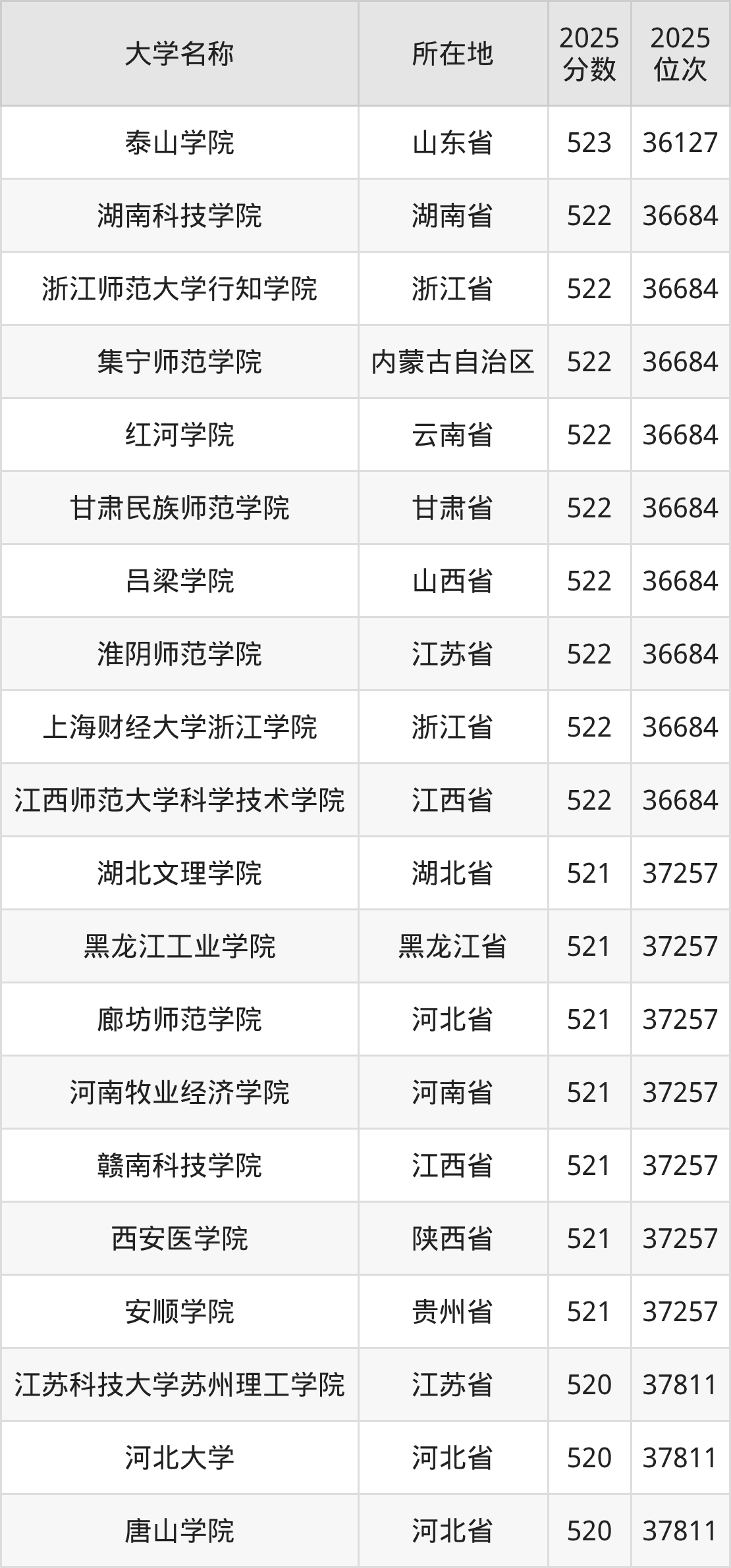 小编依据圆梦志愿平台提供的全国高校在河北省招生录取数据,精心筛选并整理了针对2026年河北考生的一份重要参考:列出了2025年录取位次接近河北省第37000名的大学清单。