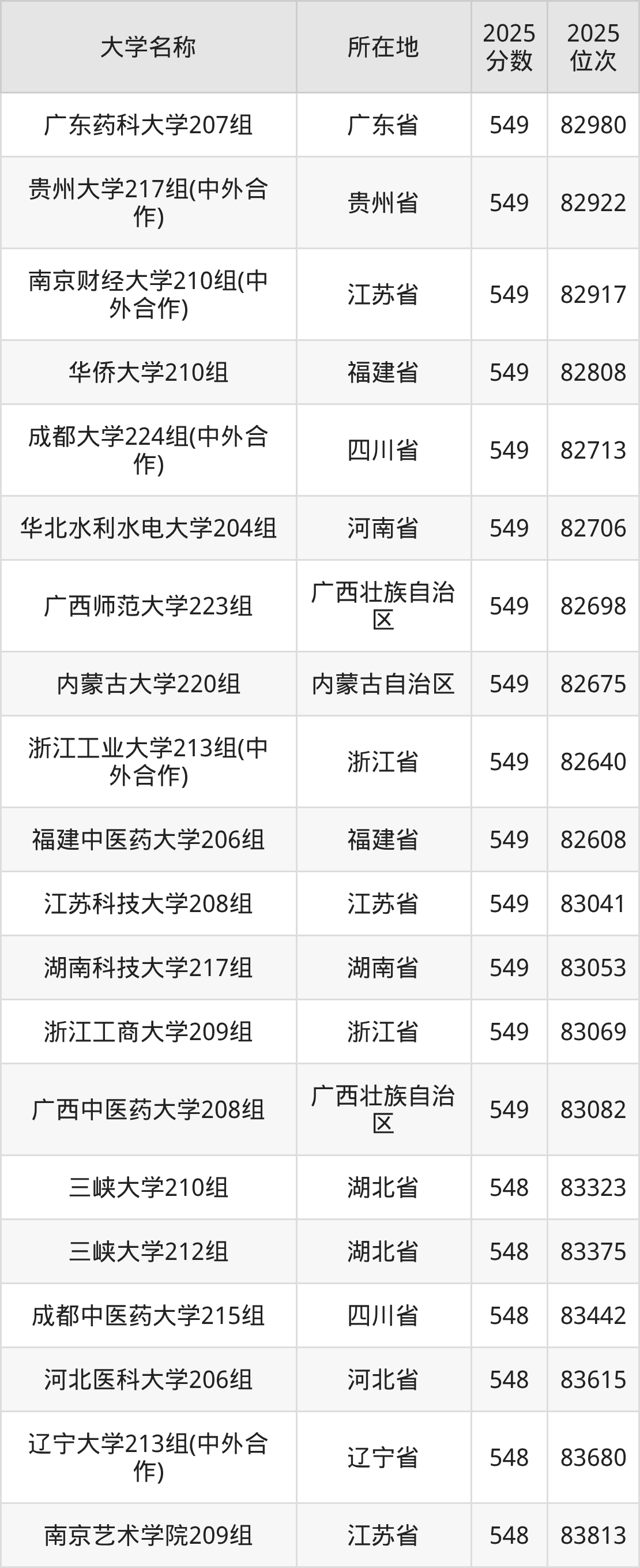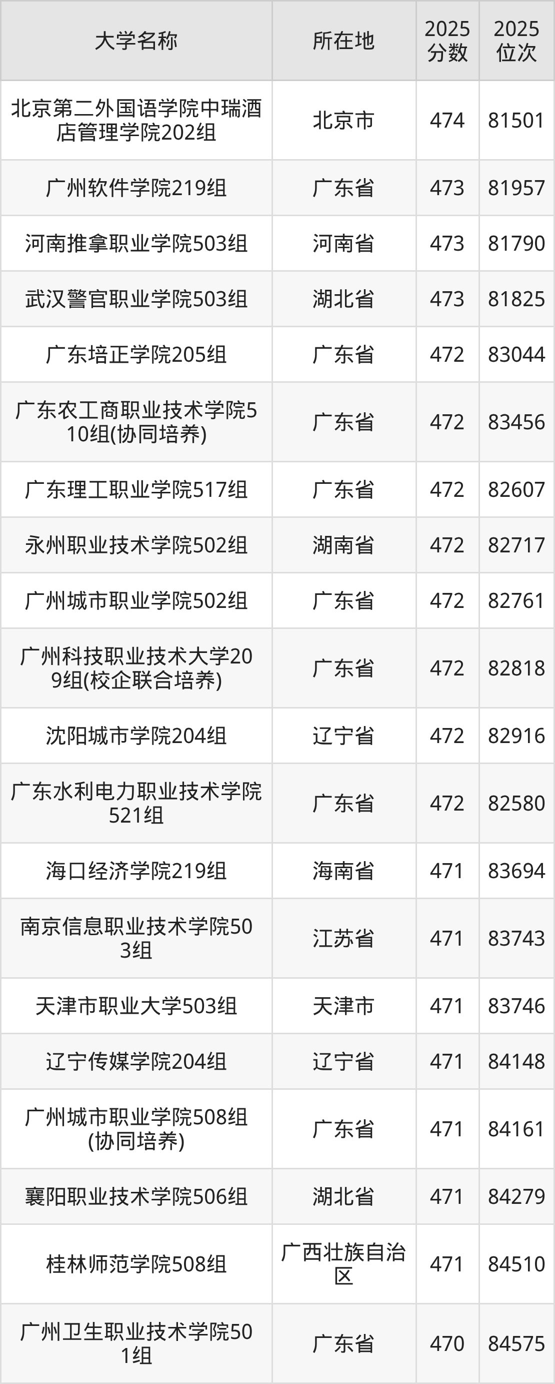 小编依据圆梦志愿平台提供的全国高校在广东省招生录取数据,精心筛选并整理了针对2026年广东考生的一份重要参考:列出了2025年录取位次接近广东省第83000名的大学清单。