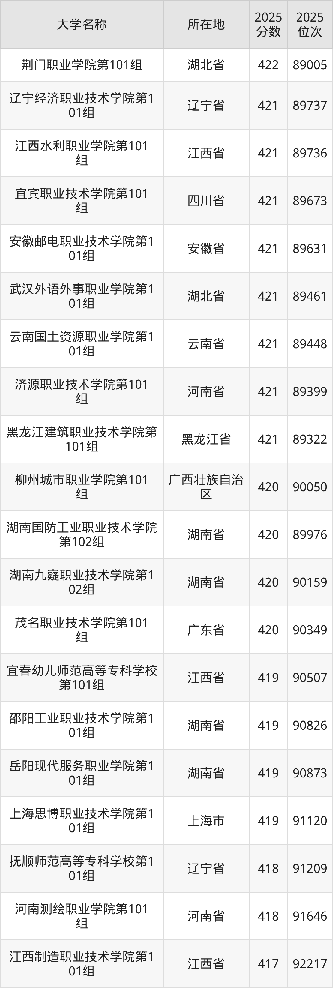 江西高考历史类最低位次在90000名附近的院校专业组中,其中有3所位于江西省内,分别为:江西水利职业学院、宜春幼儿师范高等专科学校、江西制造职业技术学院。