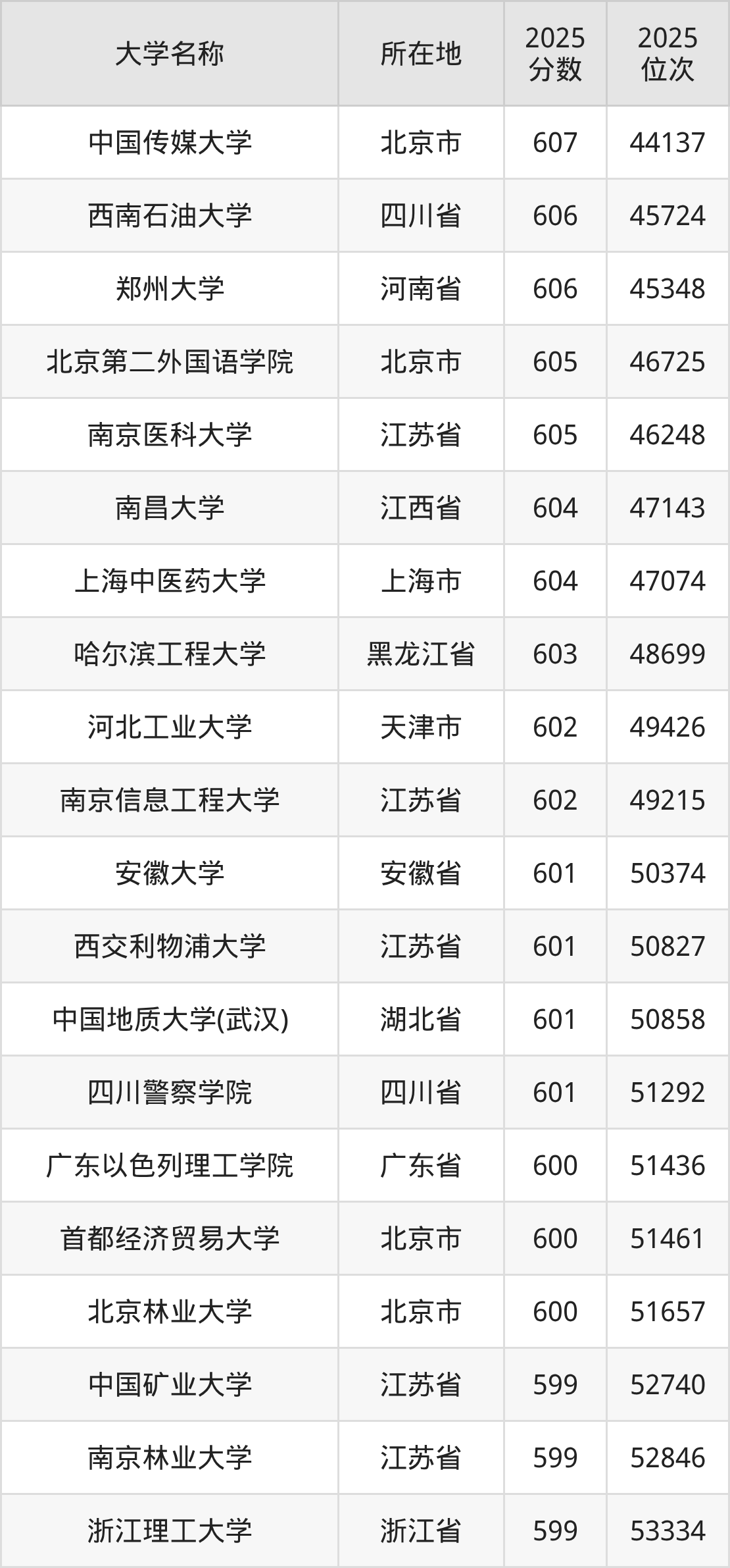 小编依据圆梦志愿平台提供的全国高校在浙江省招生录取数据,精心筛选并整理了针对2026年浙江考生的一份重要参考:列出了2025年录取位次接近浙江省第50000名的大学清单。