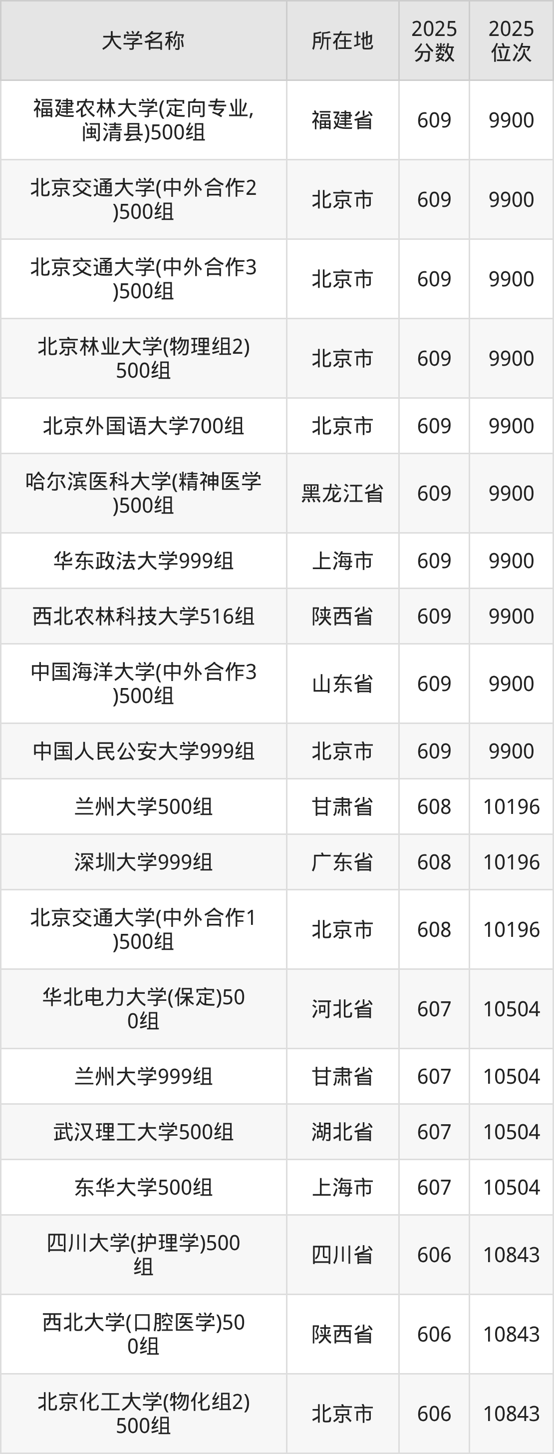 小编依据圆梦志愿平台提供的全国高校在福建省招生录取数据,精心筛选并整理了针对2026年福建考生的一份重要参考:列出了2025年录取位次接近福建省第10000名的大学清单。