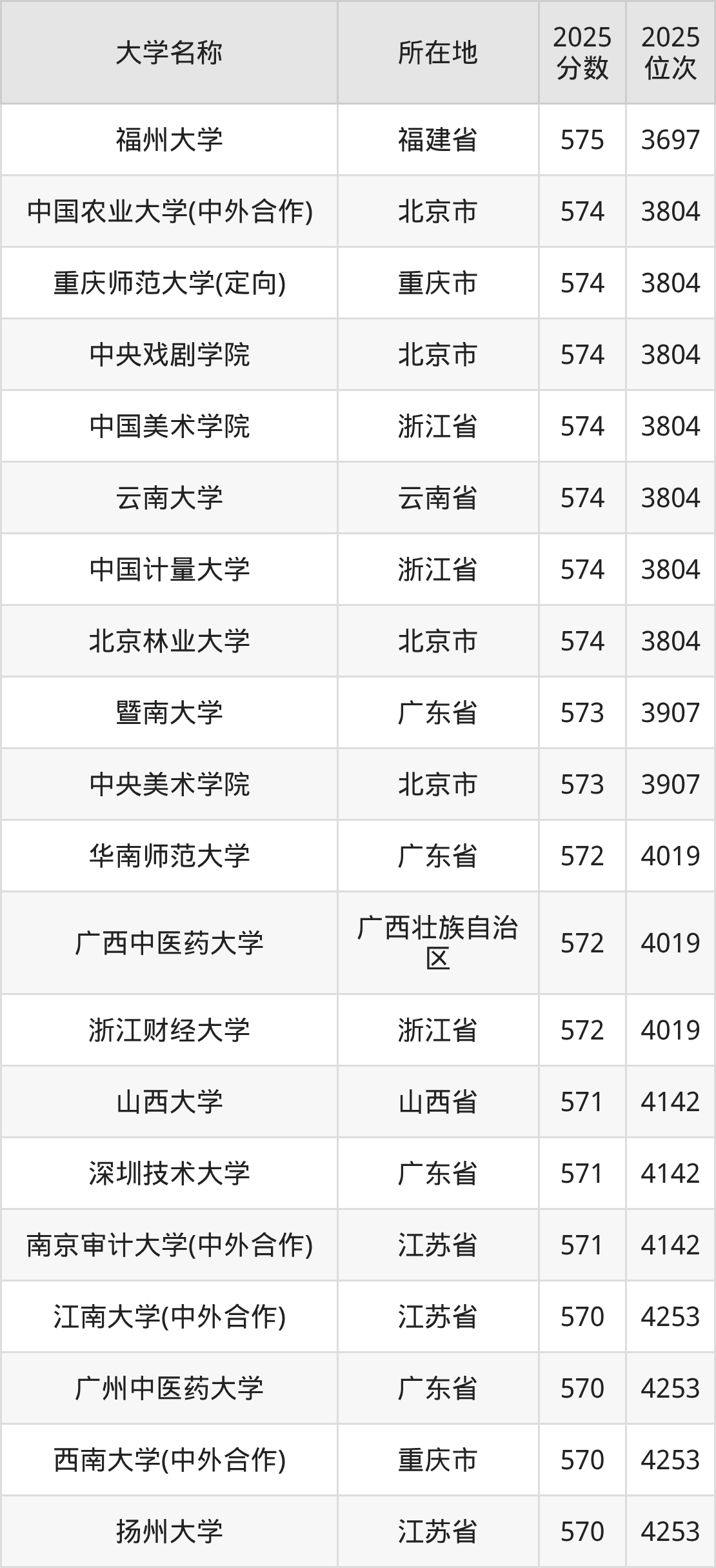 2025年重庆高考历史类3500名至4500名对应的高考分数是569分至576分,请2026年重庆考生参考!