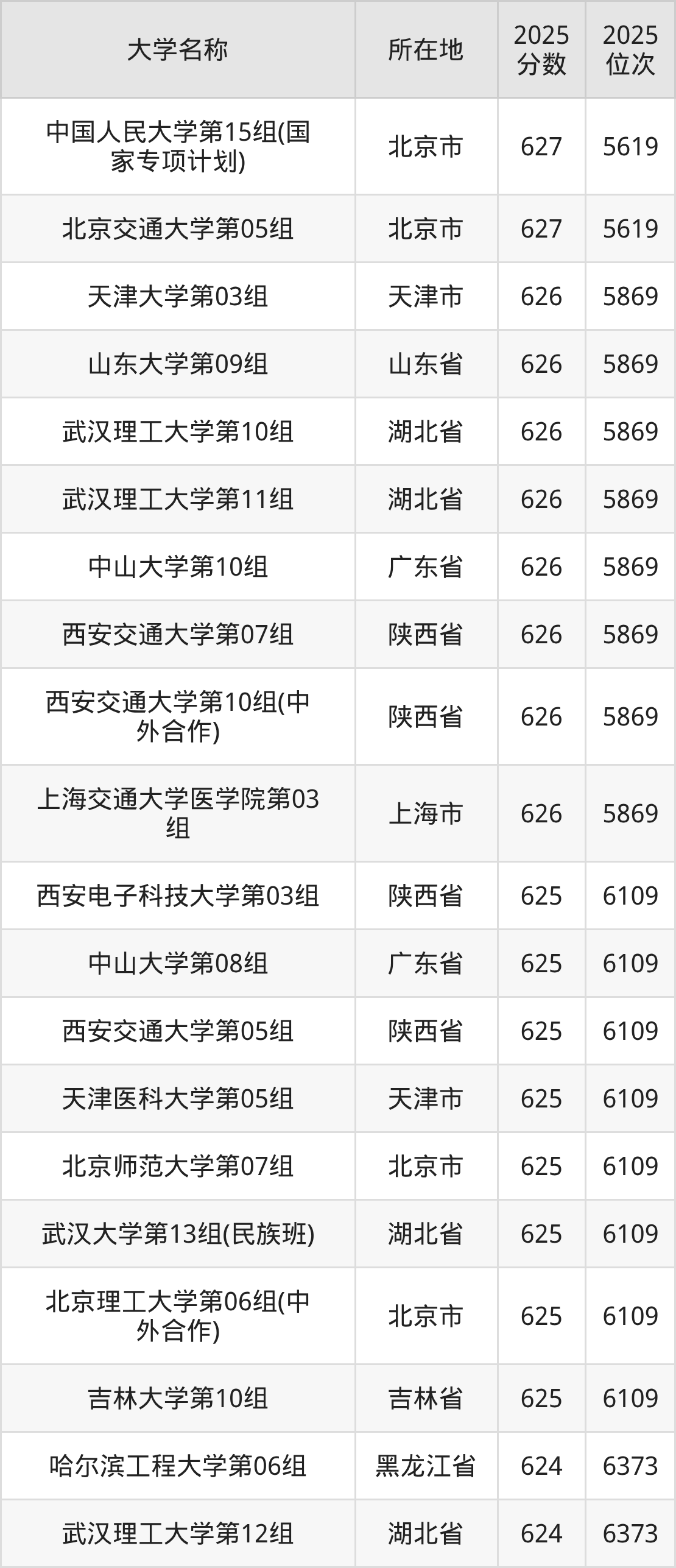 2025年湖北高考物理类5500名至6500名对应的高考分数是624分至627分,请2026年湖北考生参考!