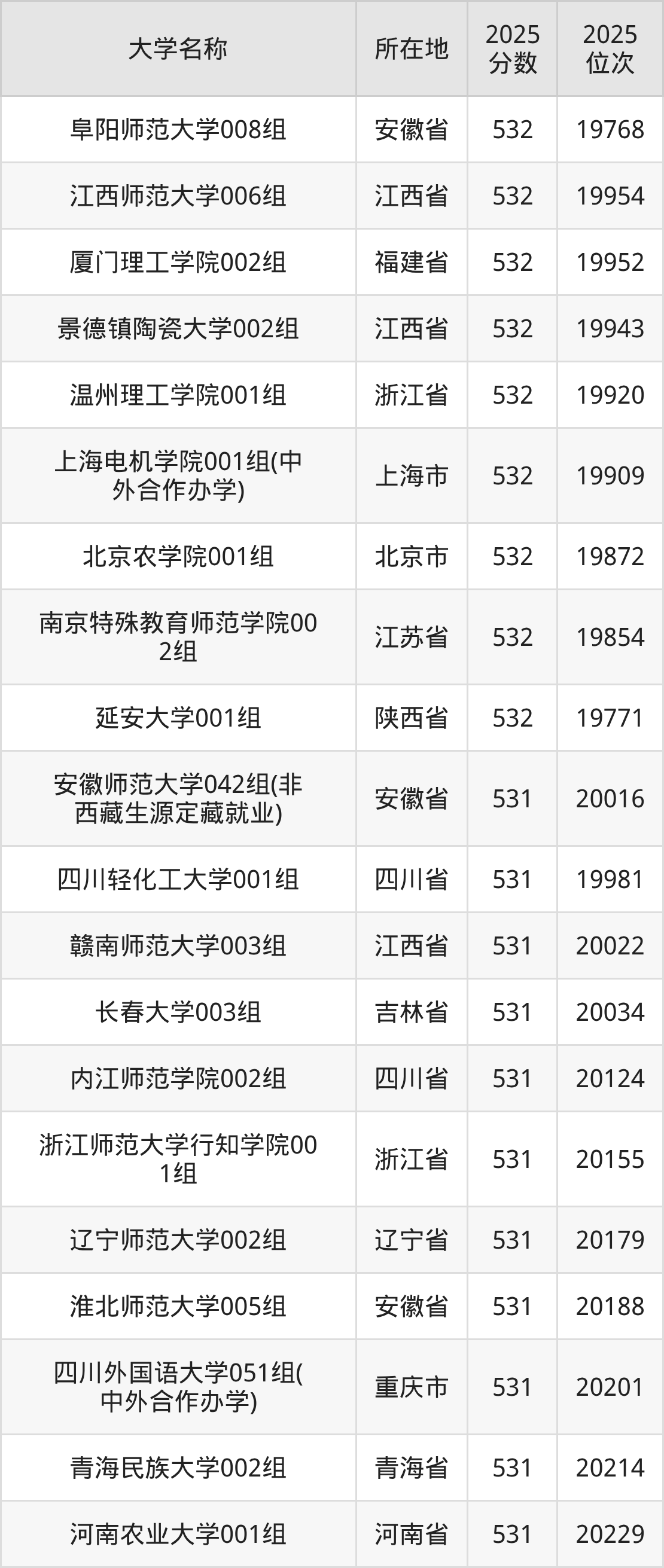 小编依据圆梦志愿平台提供的全国高校在安徽省招生录取数据,精心筛选并整理了针对2026年安徽考生的一份重要参考:列出了2025年录取位次接近安徽省第20000名的大学清单。