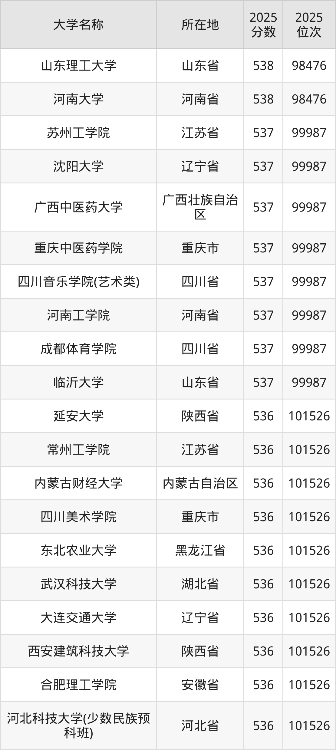 小编依据圆梦志愿平台提供的全国高校在河北省招生录取数据,精心筛选并整理了针对2026年河北考生的一份重要参考:列出了2025年录取位次接近河北省第100000名的大学清单。