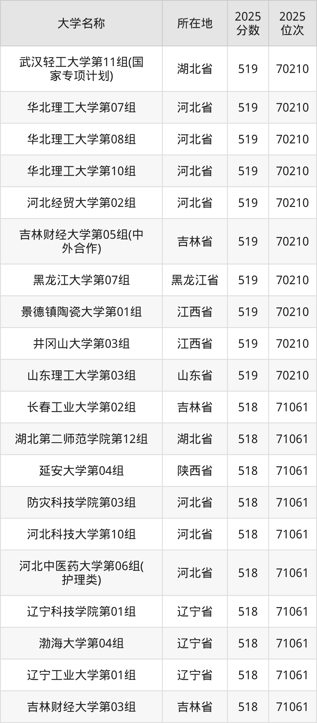 小编依据圆梦志愿平台提供的全国高校在湖北省招生录取数据,精心筛选并整理了针对2026年湖北考生的一份重要参考:列出了2025年录取位次接近湖北省第71000名的大学清单。