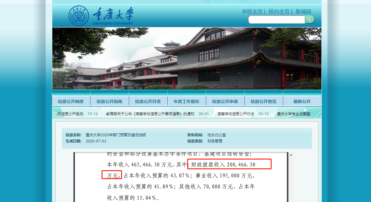 重庆大学和西南大学分别是重庆市排名第一和第二的高校。但根据两所学校2020年的部门预算,重庆大学共收到财政拨款200,466.30万元,西南大学则收到222,883.56万元。西南大学仅为211高校,并非985高校。重庆大学在受重视程度上甚至不及211大学,这意味着它没有更多的资金来建设先进的实验室,引进更高水平的人才,发展也自然会受到一定的限制。