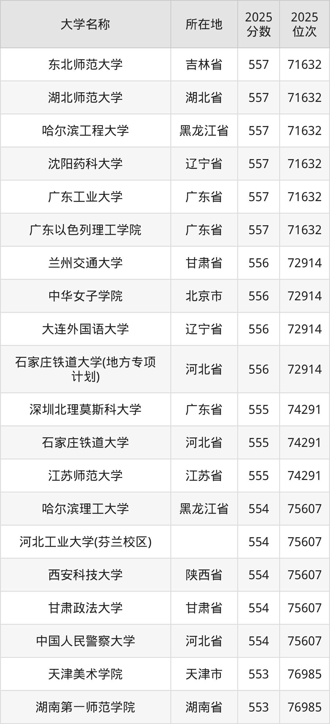 小编依据圆梦志愿平台提供的全国高校在河北省招生录取数据,精心筛选并整理了针对2026年河北考生的一份重要参考:列出了2025年录取位次接近河北省第73000名的大学清单。