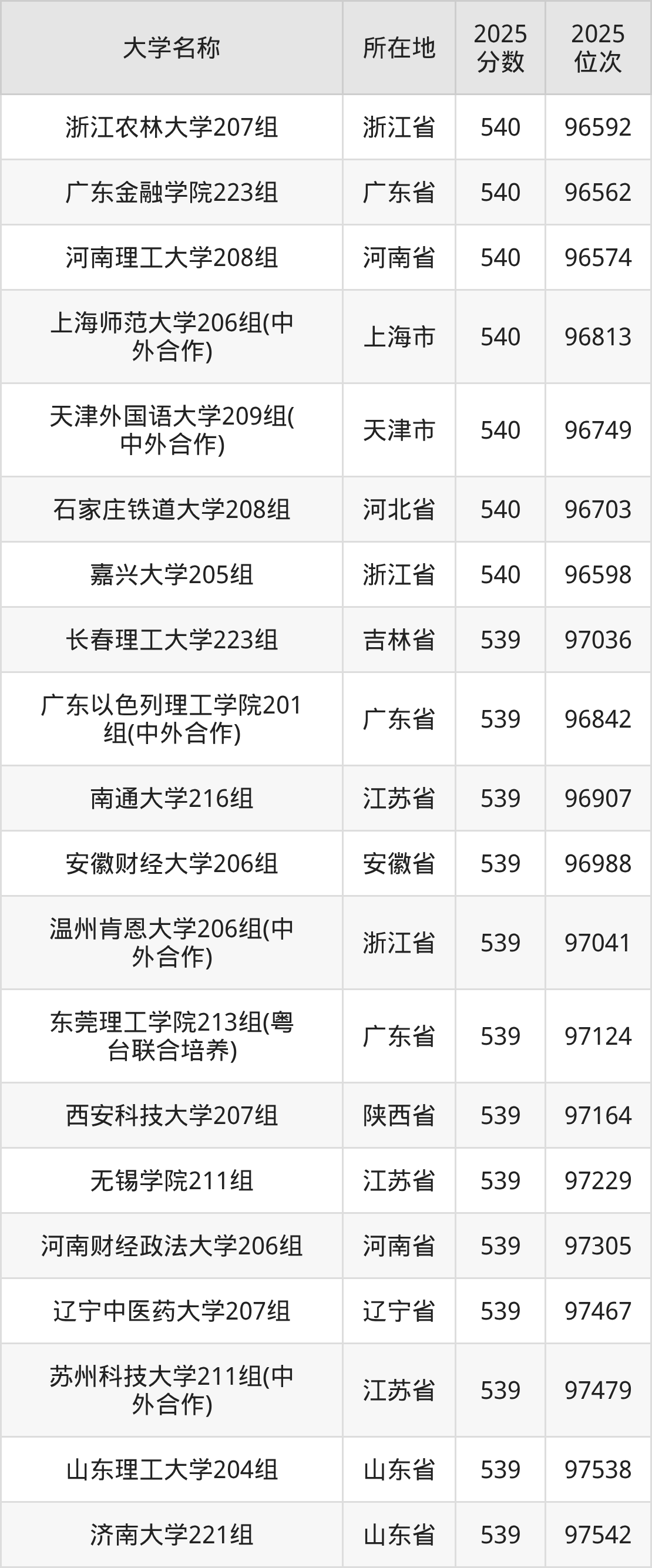 小编依据圆梦志愿平台提供的全国高校在广东省招生录取数据,精心筛选并整理了针对2026年广东考生的一份重要参考:列出了2025年录取位次接近广东省第97000名的大学清单。