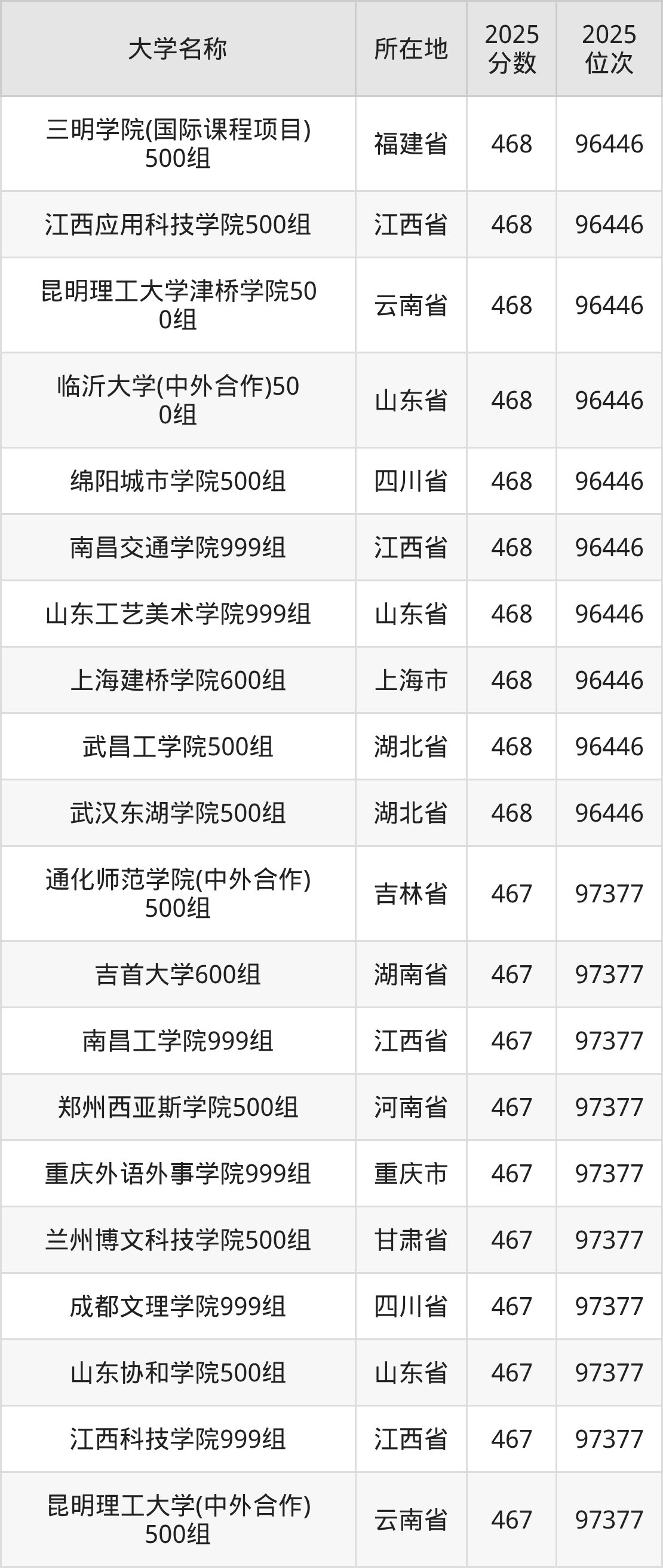 小编依据圆梦志愿平台提供的全国高校在福建省招生录取数据,精心筛选并整理了针对2026年福建考生的一份重要参考:列出了2025年录取位次接近福建省第97000名的大学清单。