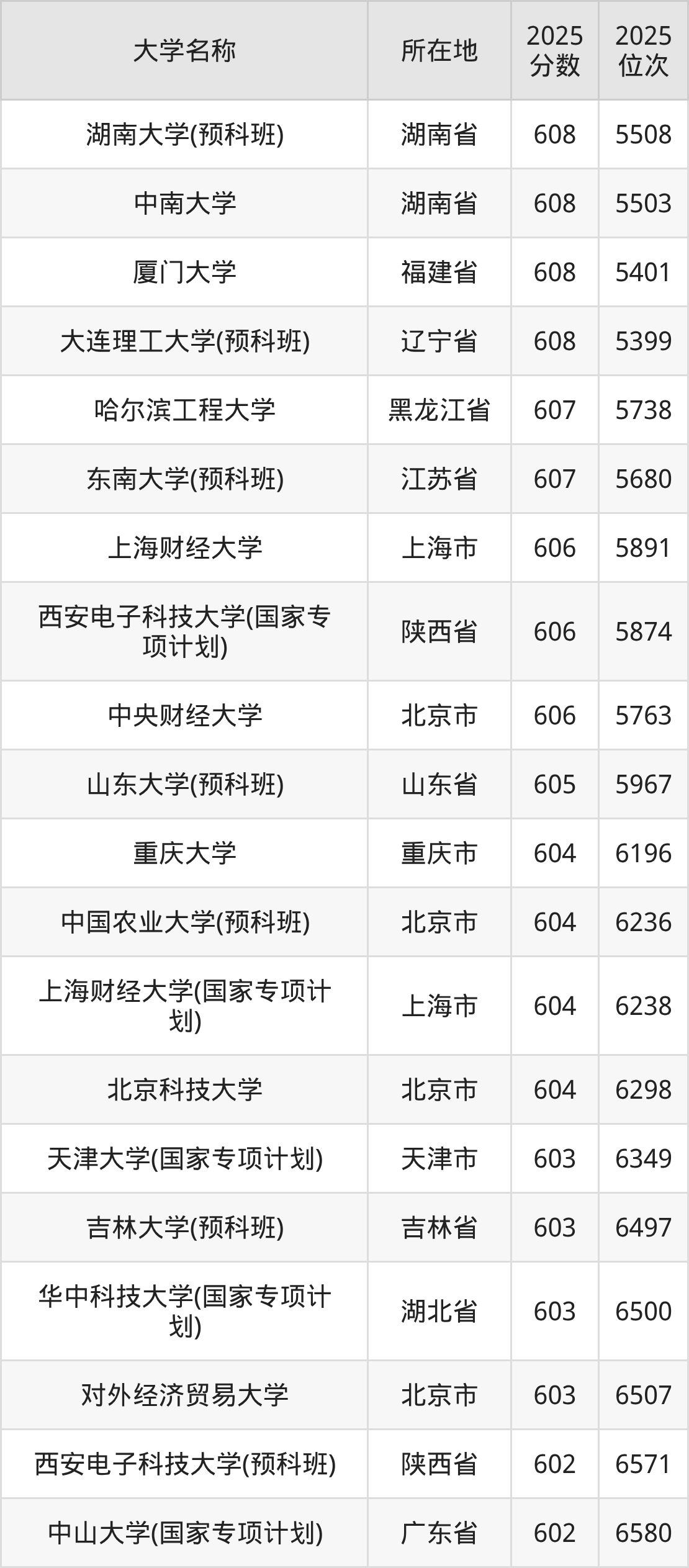 2025年贵州高考物理类5500名至6500名对应的高考分数是604分至608分,请2026年贵州考生参考!