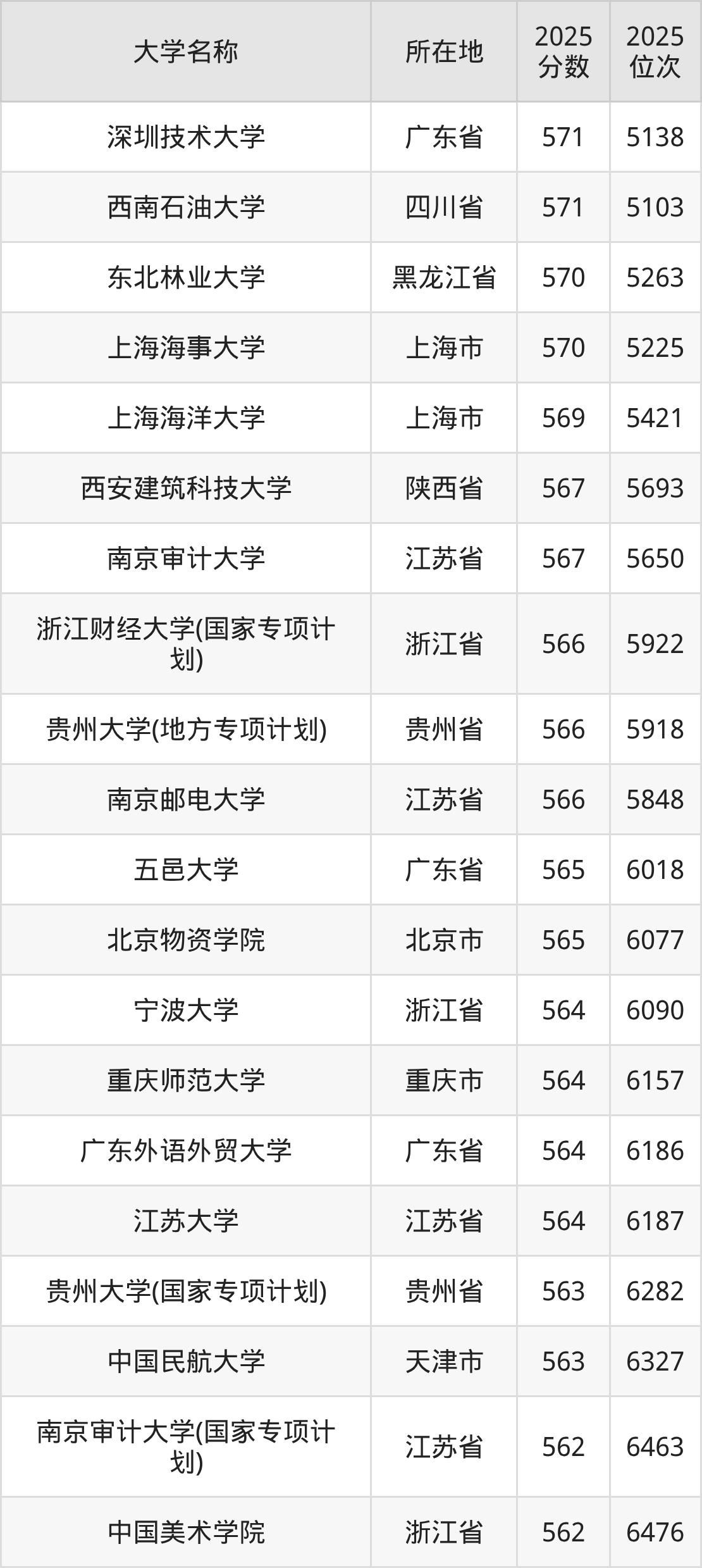 小编依据圆梦志愿平台提供的全国高校在贵州省招生录取数据,精心筛选并整理了针对2026年贵州考生的一份重要参考:列出了2025年录取位次接近贵州省第6000名的大学清单。