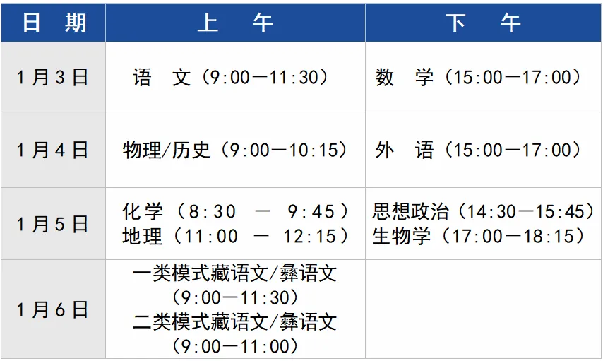 下面是四川2025新高考适应性考试的具体科目时间安排: