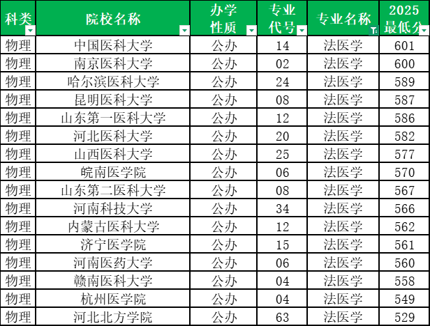 下面是2025年法医学专业大学分数线排名最低的10所大学(均为物理类):