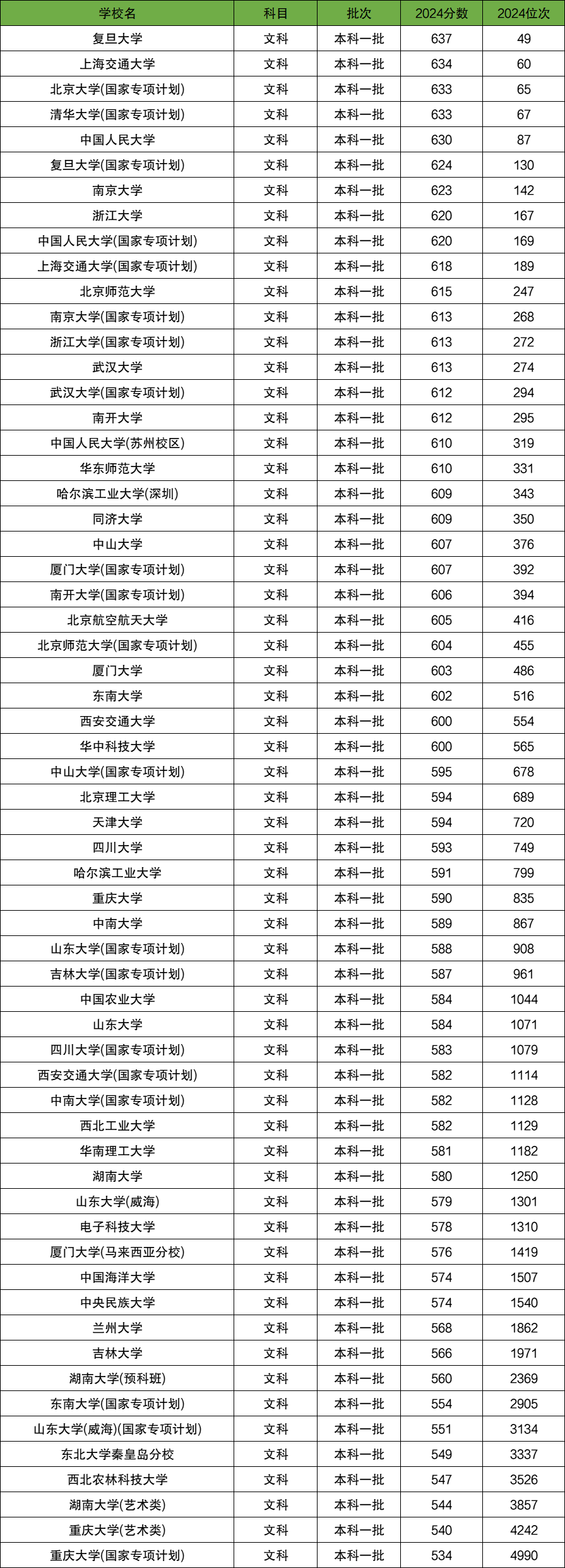 2024年陕西省文科一本线为488分。陕西文科生超过一本线150分能报考的985大学有复旦大学、上海交通大学、北京大学(国家专项计划)、清华大学(国家专项计划)、中国人民大学等。