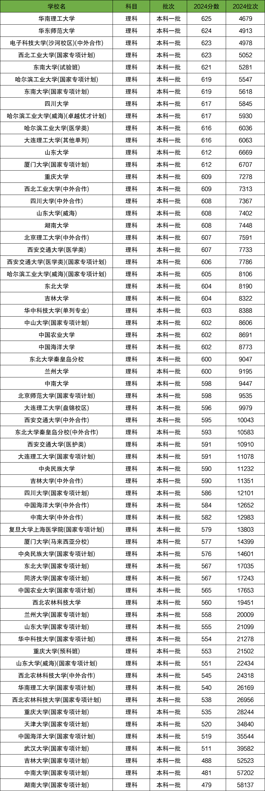 2024年陕西省理科一本线为475分。陕西理科考生超过一本线150分在全国内能上的985大学有华南理工大学、华东师范大学、电子科技大学(沙河校区)(中外合作)、西北工业大学(国家专项计划)、东南大学(试验班)等。