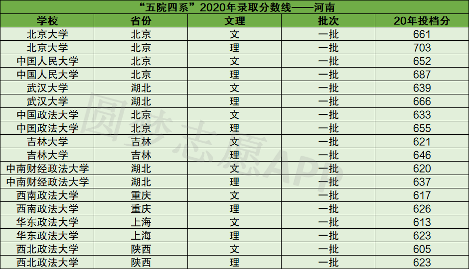 三、五院四系2020年录取分数线汇总(河南、四川)
