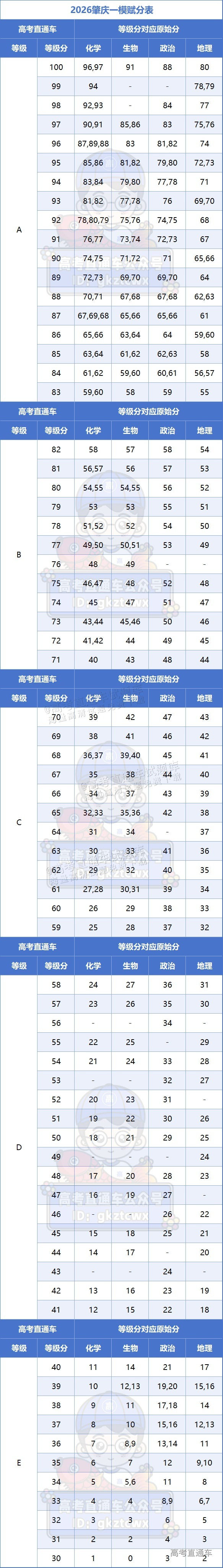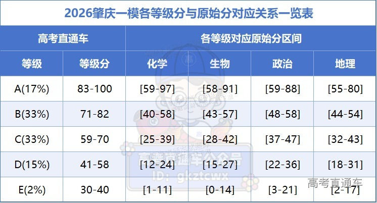 以下是2026广东肇庆一模各科赋分对照表: