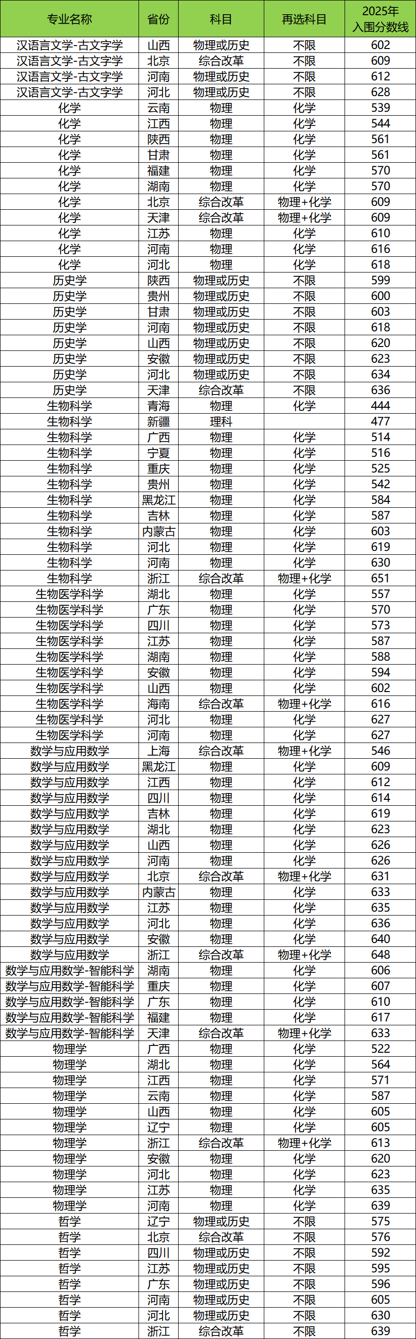 山西:最低602分入围,生物医学科学;