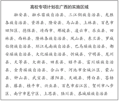 以广西高考为例,高校专项计划要求高三学生的户籍必须在以地点: