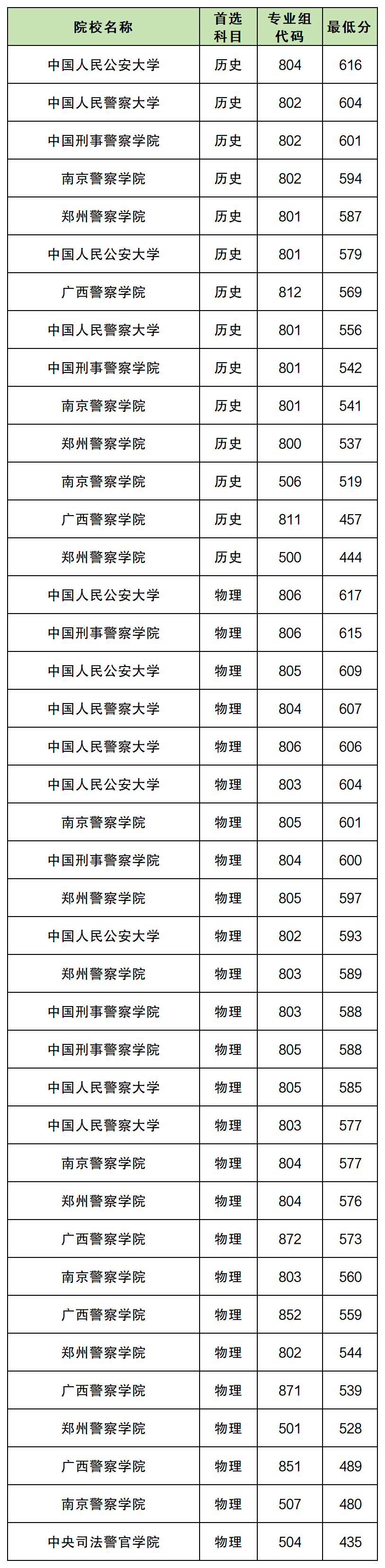 物理类:最低435分,对应中央司法警官学院504组。