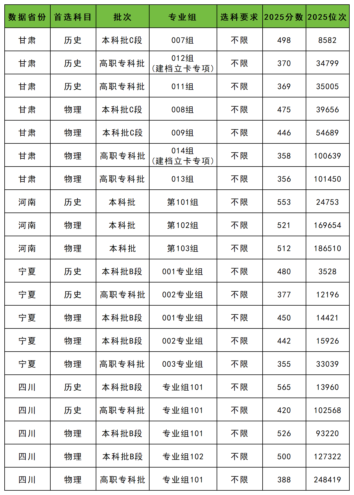 | 甘肃 | 历史 | 002 | 女 | 553 |