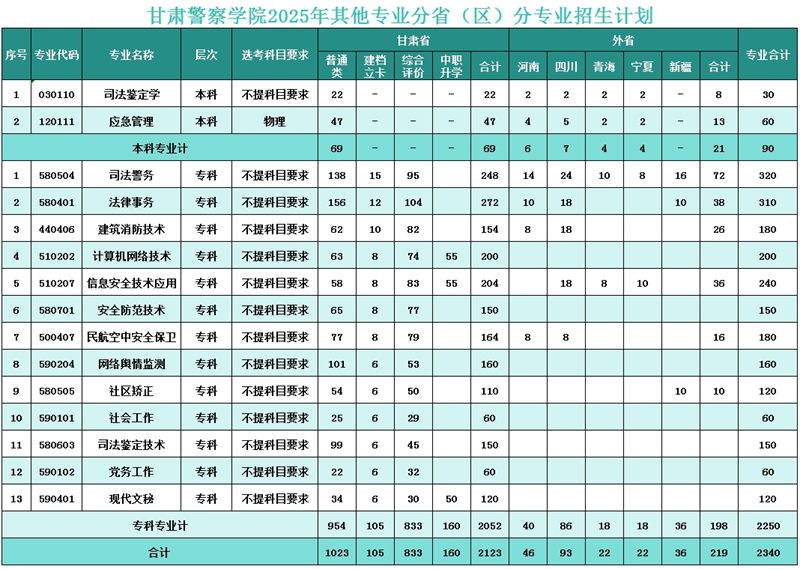 一、甘肃警察学院2026年招生计划