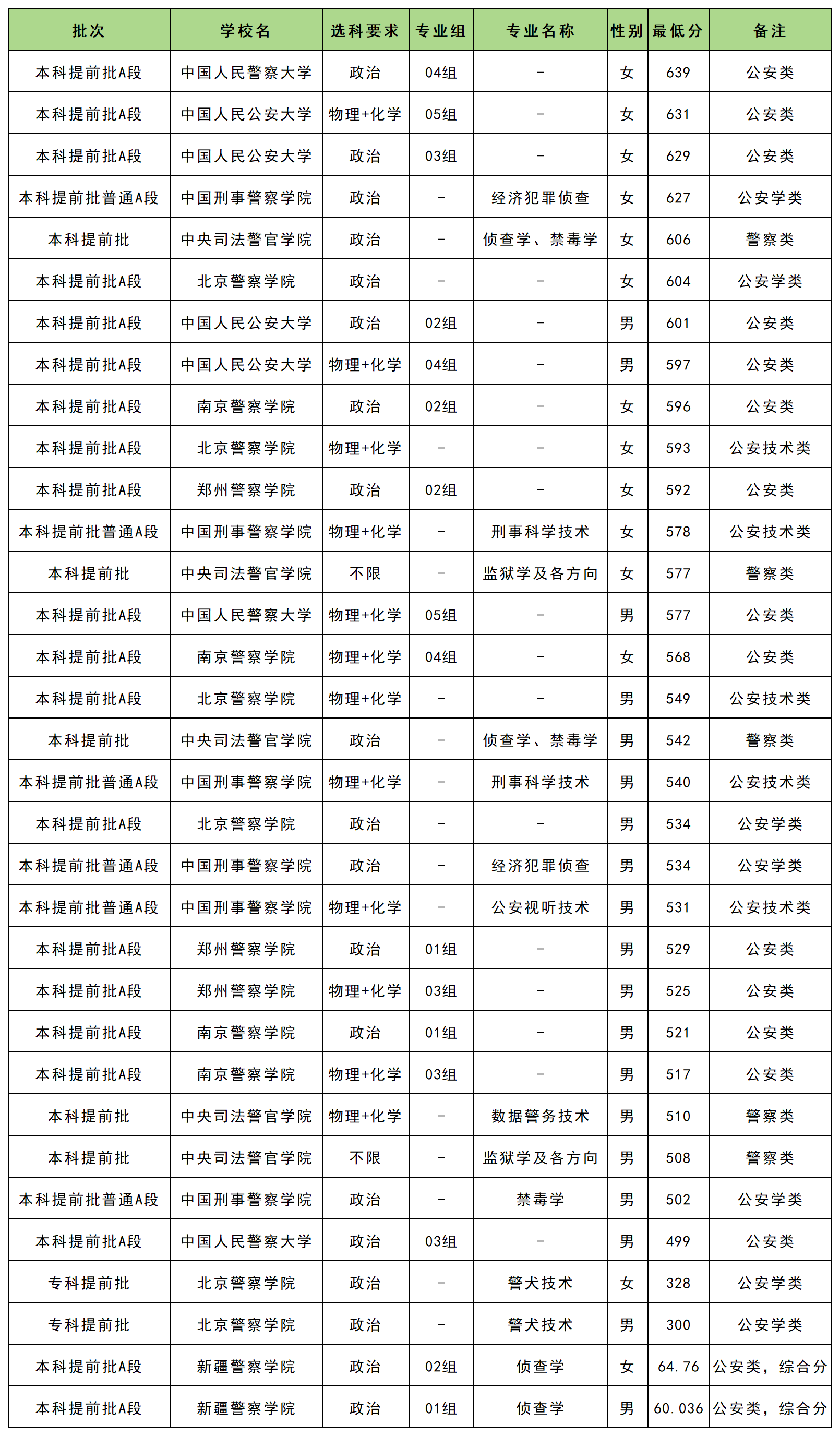 代表院校:中国人民公安大学、郑州警察学院、中国刑事警察学院等。