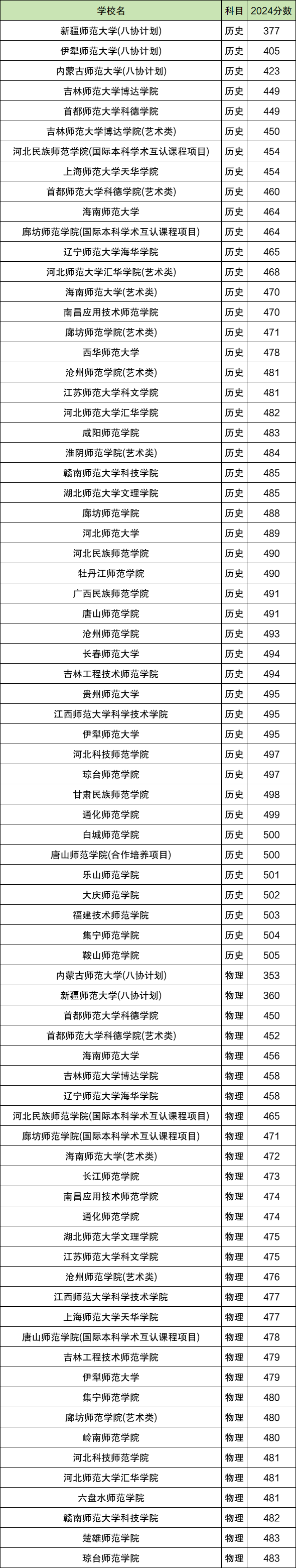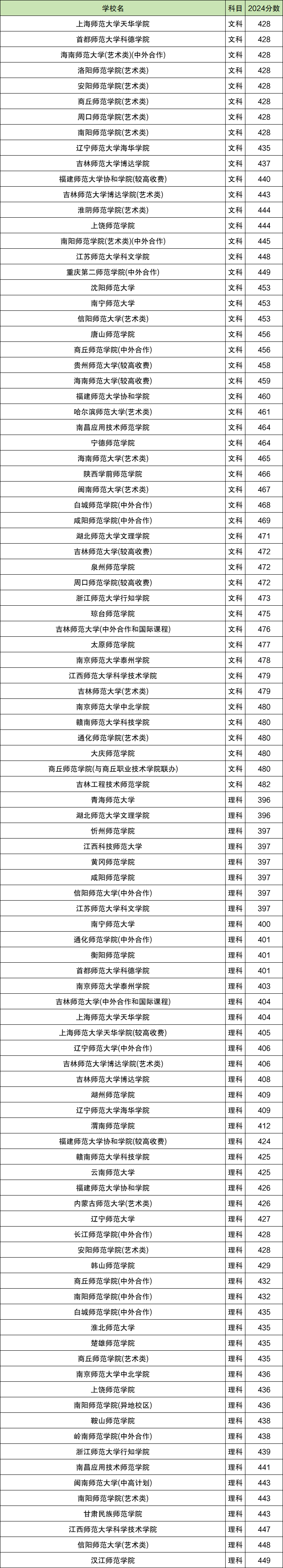 本文就整理出2024年二本师范大学在全国部分地区的录取分数线,供参考。