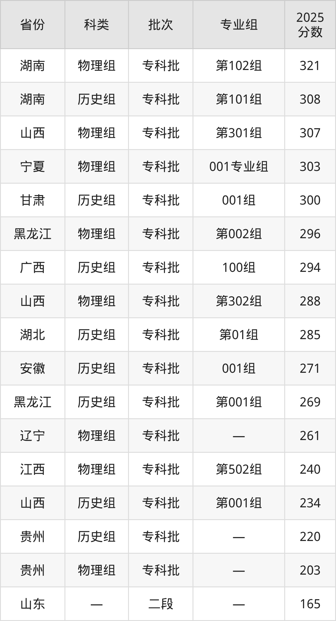 下面是贵州电子信息职业技术学院2025年在全国各省的录取分数线一览表,供参考: