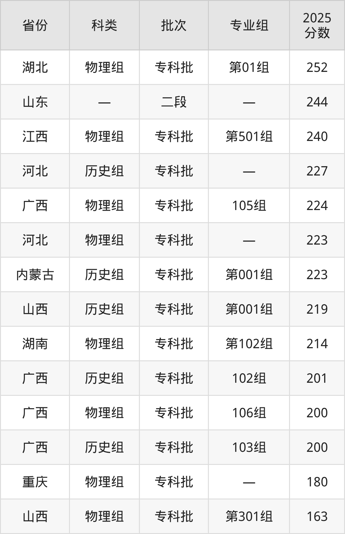下面是桂林生命与健康职业技术学院2025年在全国各省的录取分数线一览表,供参考: