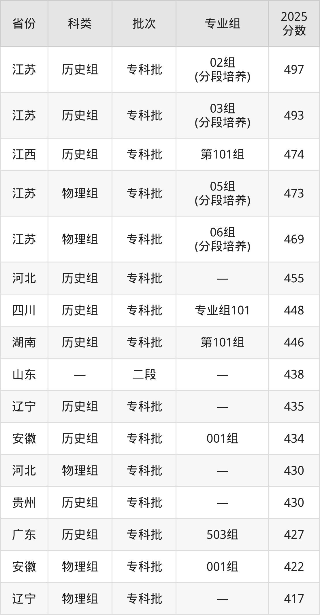 而江西地区历史组考生的分数门槛最高,2025年江苏财会职业学院第101组在江西招生最低分为474分,考生至少要超专科线184分才有可能被录取。