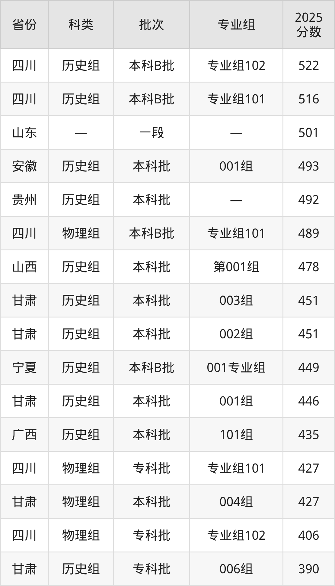下面是拉萨师范学院2025年在全国各省的录取分数线一览表,供参考: