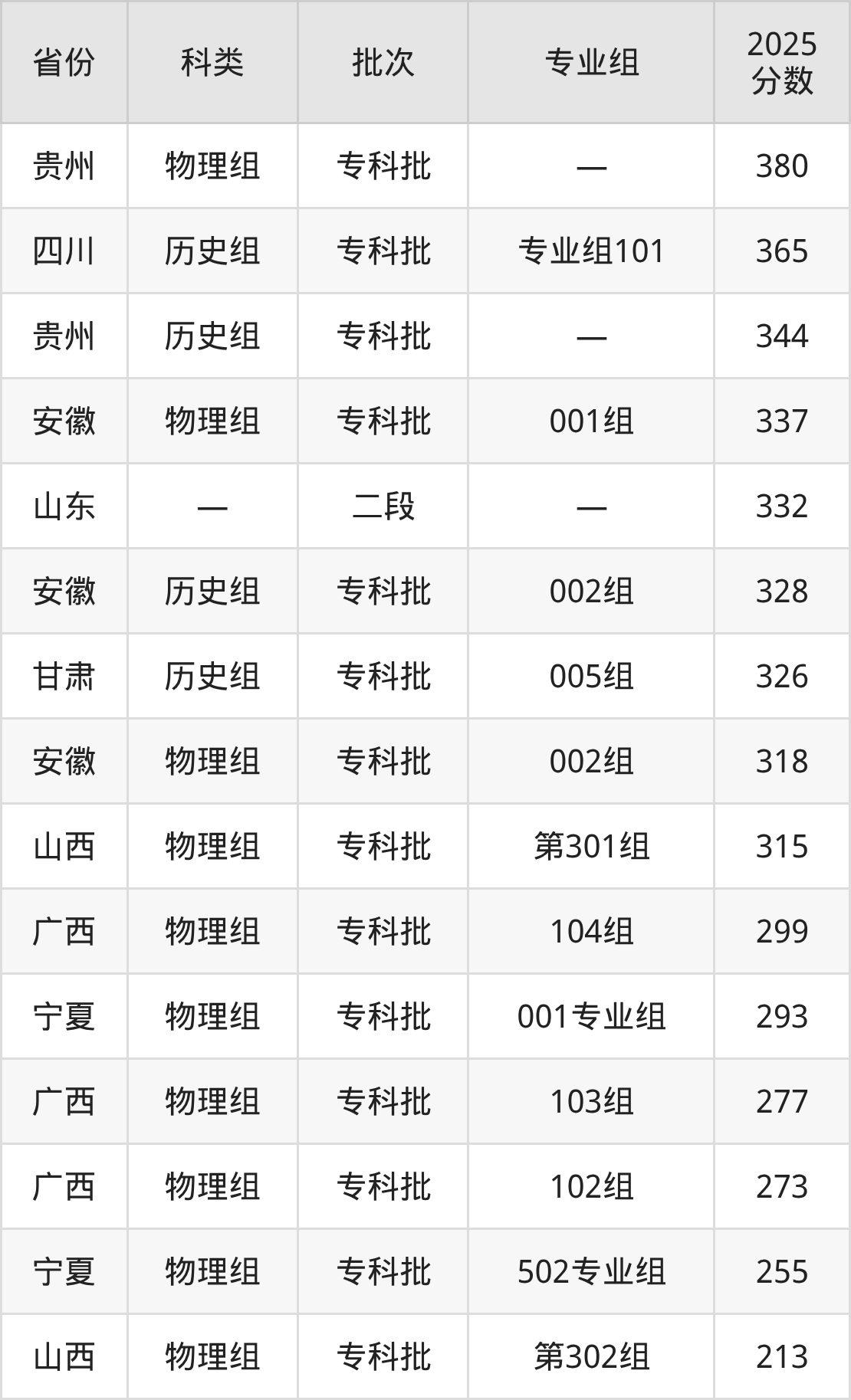 拉萨师范学院在自治区外招生的最低分为213分,其中山西地区物理组考生上拉萨师范学院的分数门槛最低,考生成绩超专科线113分(213分)可上。其次是宁夏物理组考生,上拉萨师范学院至少要超专科线105分(255分)。