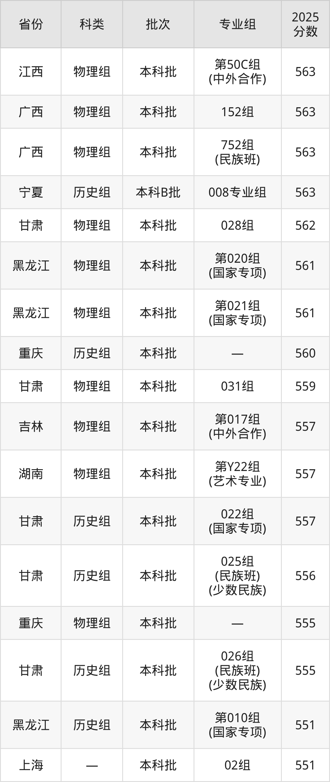 下面是陕西师范大学2025年在全国各省的录取分数线一览表,供参考: