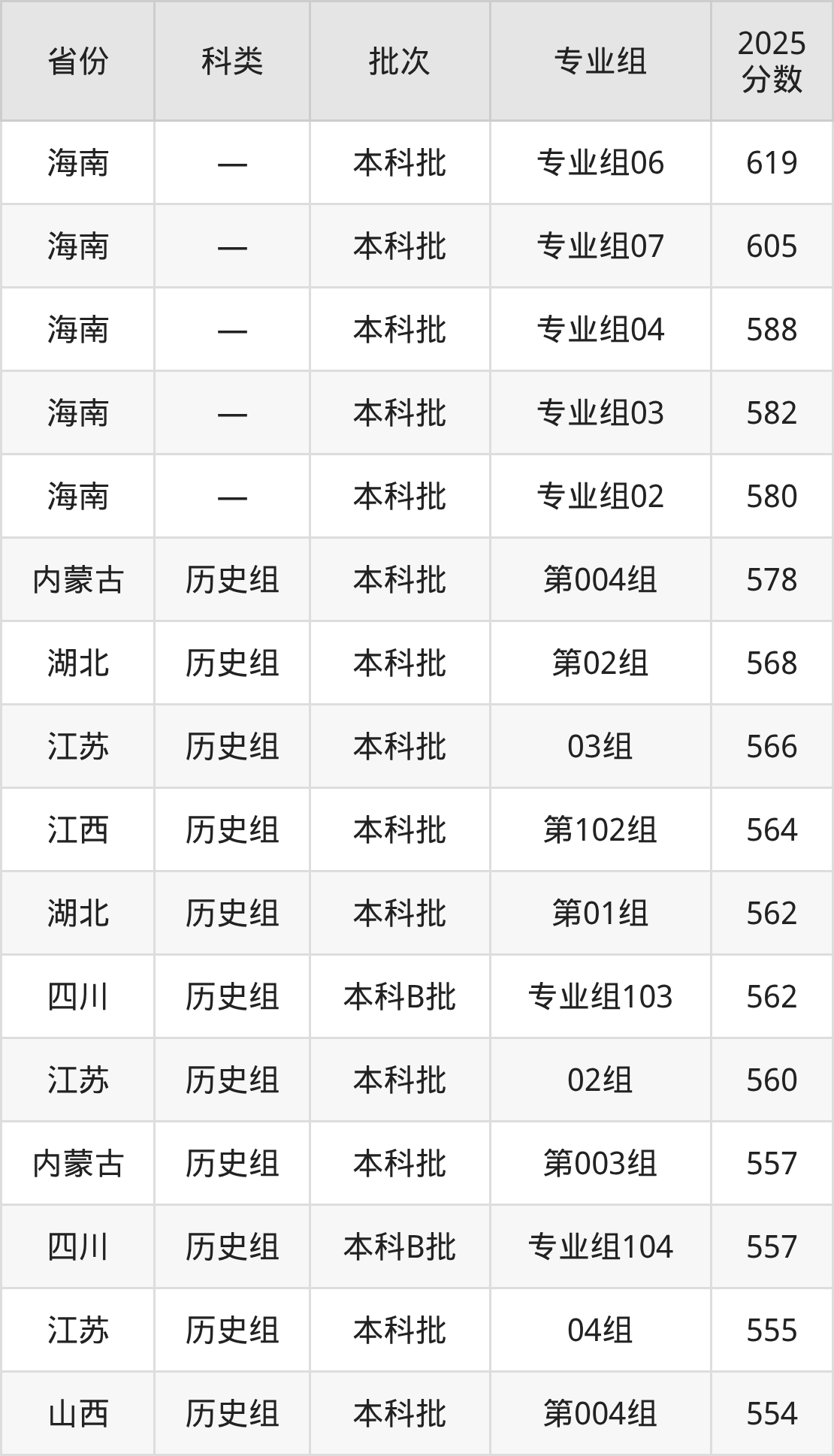 而海南地区考生的分数门槛最高,2025年淮北师范大学专业组06在海南招生最低分为619分,考生至少要超本科线139分才有可能被录取。