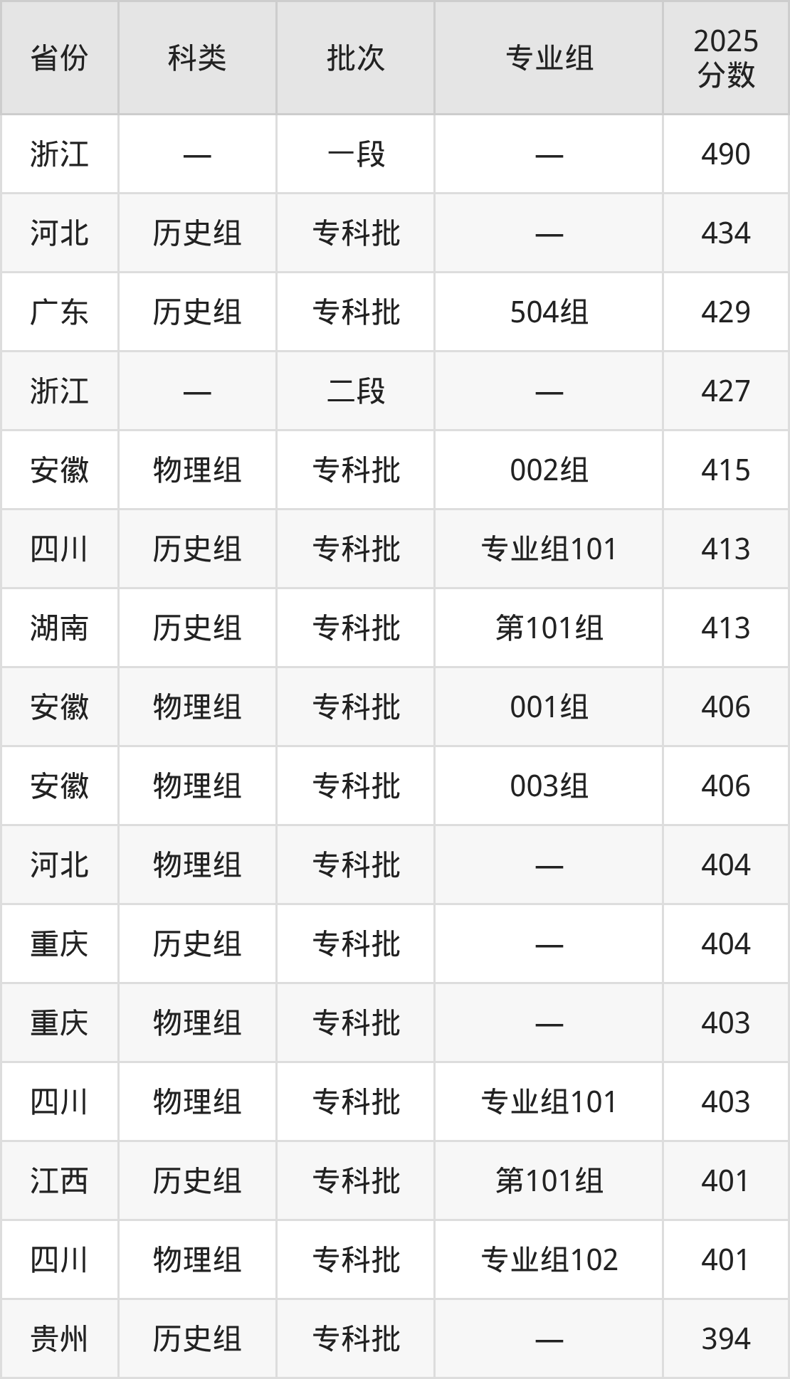而浙江地区考生的分数门槛最高,2025年上饶卫生健康职业学院在浙江招生最低分为490分,考生至少要超一段线0分才有可能被录取。