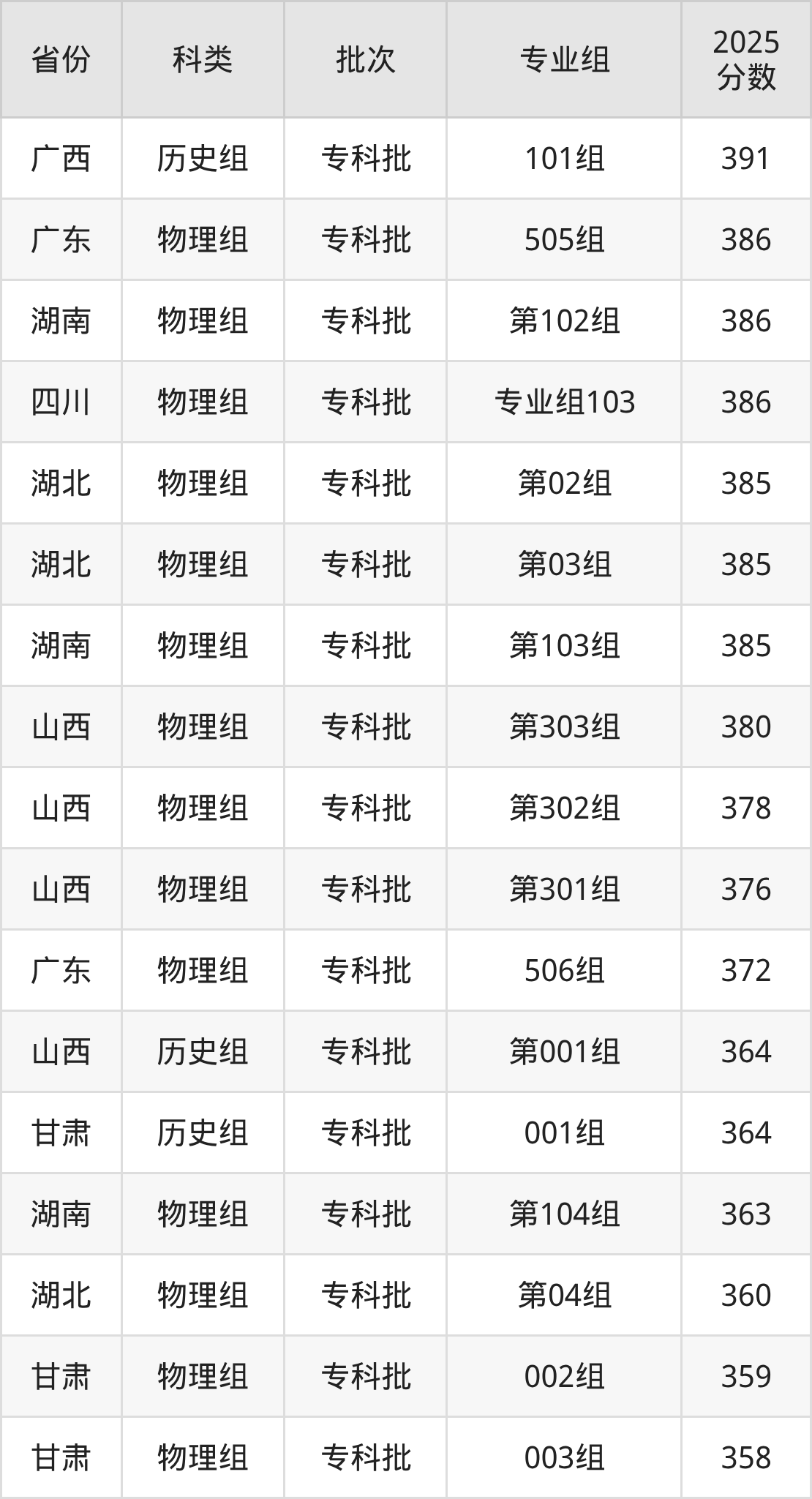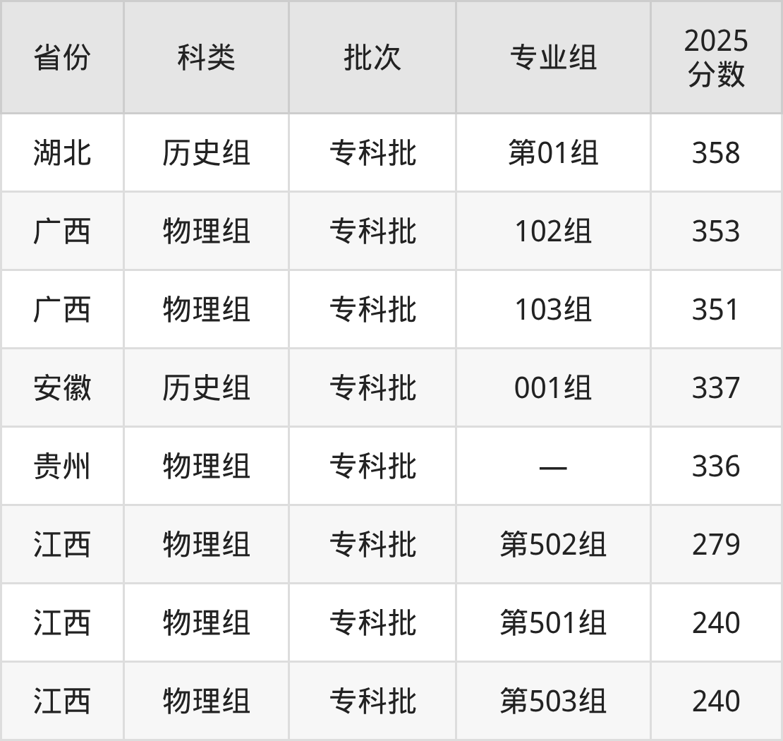 下面是上饶卫生健康职业学院2025年在全国各省的录取分数线一览表,供参考: