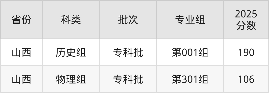 下面是太原幼儿师范高等专科学校2025年在全国各省的录取分数线一览表,供参考: