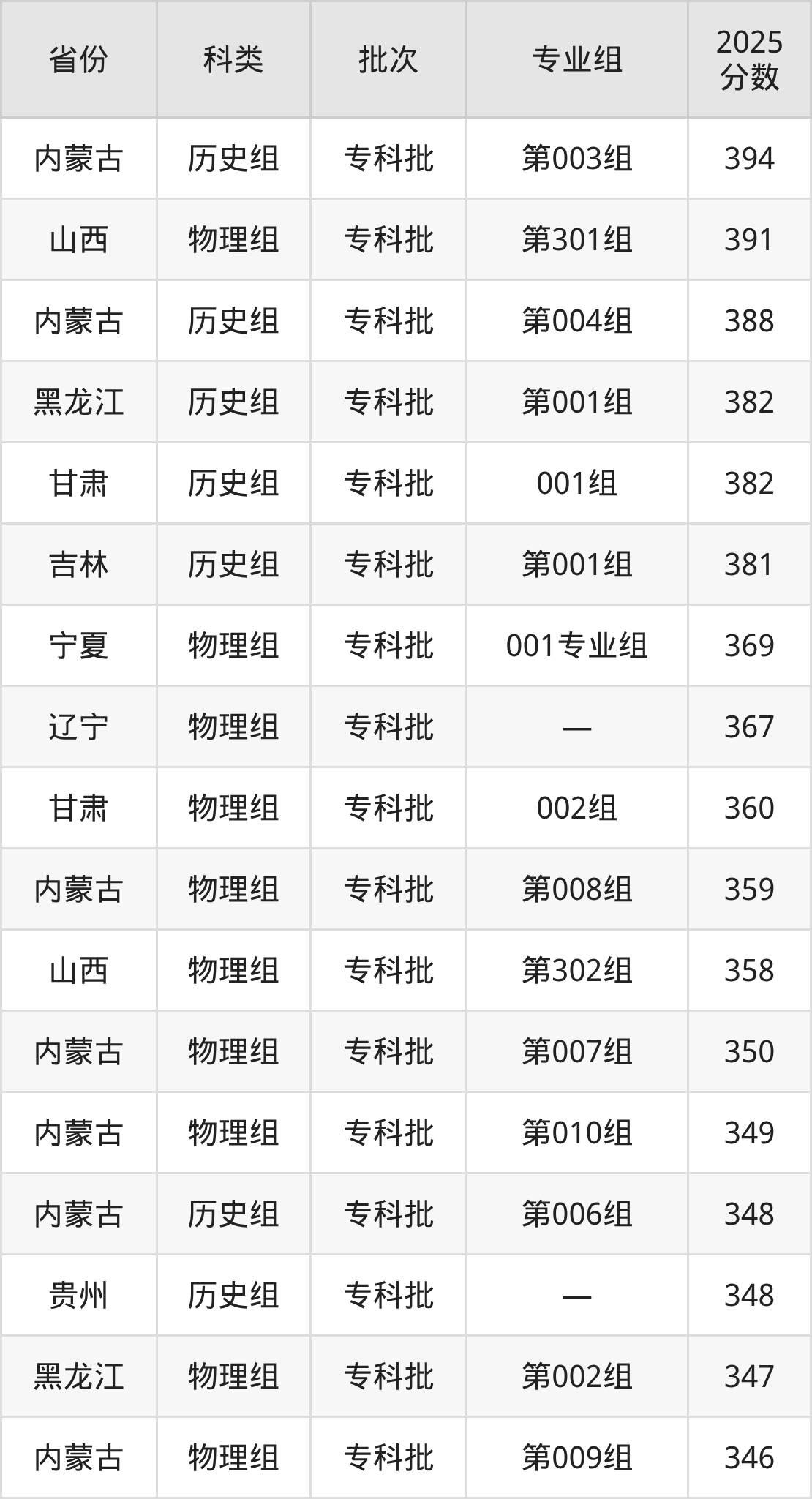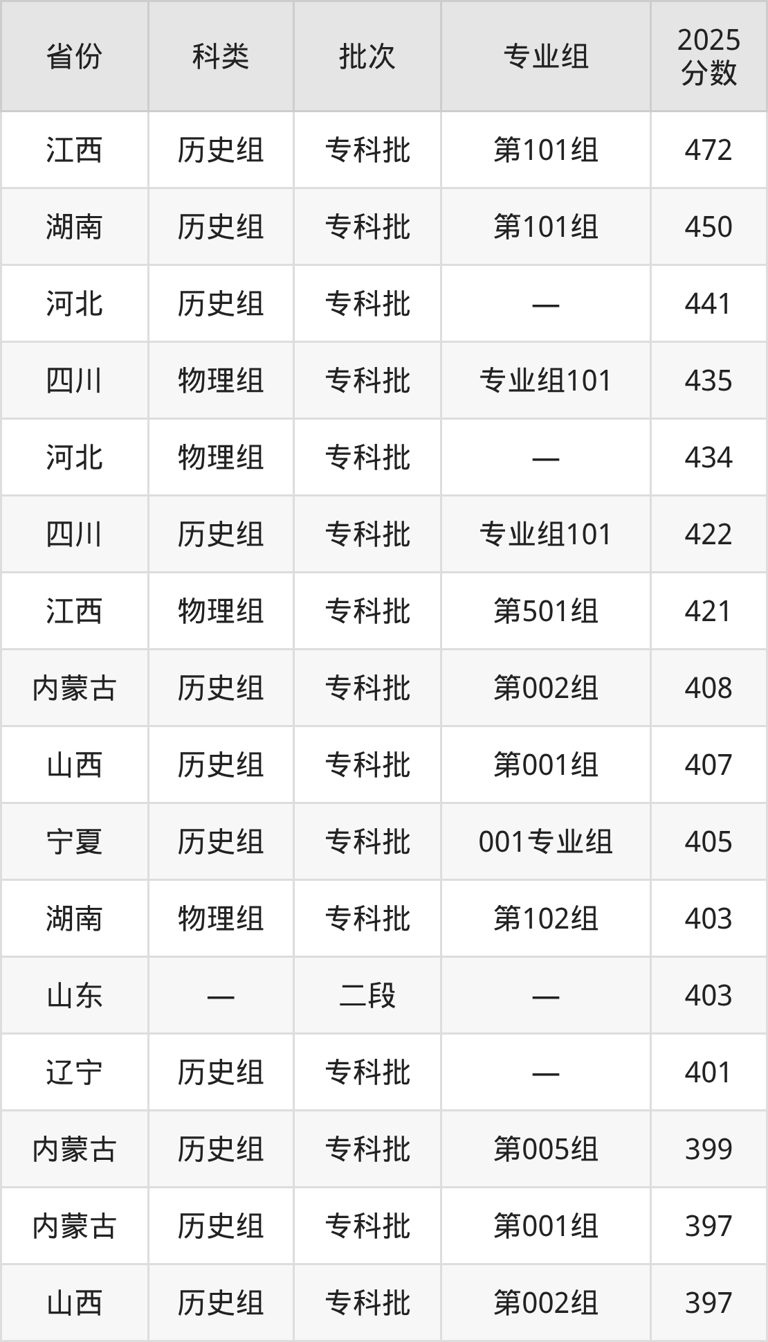 而江西地区历史组考生的分数门槛最高,2025年天津渤海职业技术学院第101组在江西招生最低分为472分,考生至少要超专科线182分才有可能被录取。