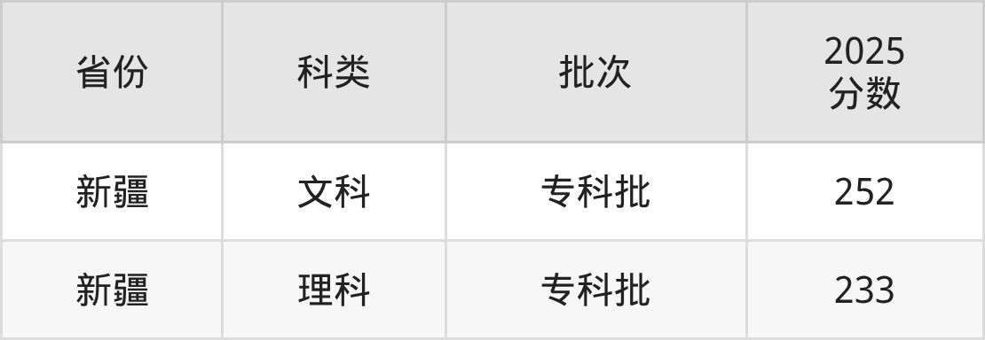 新疆生产建设兵团兴新职业技术学院2026年录取分数需在高招结束官方数据公布后更新,2026届有意向报考该校的同学,可以在填报志愿时参考新疆生产建设兵团兴新职业技术学院2025年录取分数线: