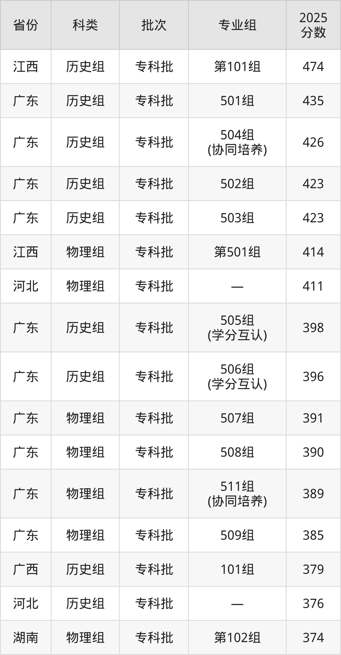而江西地区历史组考生的分数门槛最高,2025年河源职业技术学院第101组在江西招生最低分为474分,考生至少要超专科线184分才有可能被录取。