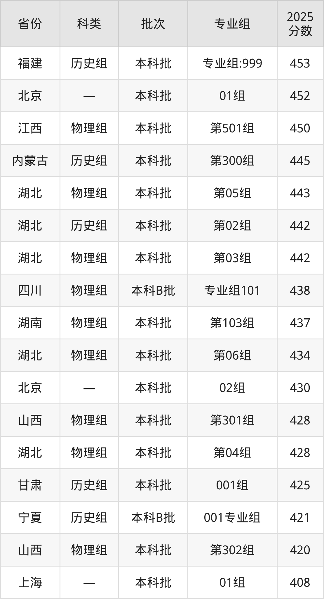 2025年武汉华夏理工学院在全国普通批次招生的录取分数范围位于372~531分之间,其中省内分数范围为428分~460分,物理组最低分专业组为“第04组”,考生428分即可报考,历史组最低分专业组为“第02组”,考生442分即可报考。