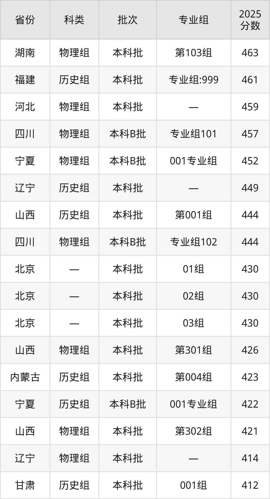 下面是北京工业大学耿丹学院2025年在全国各省的录取分数线一览表,供参考: