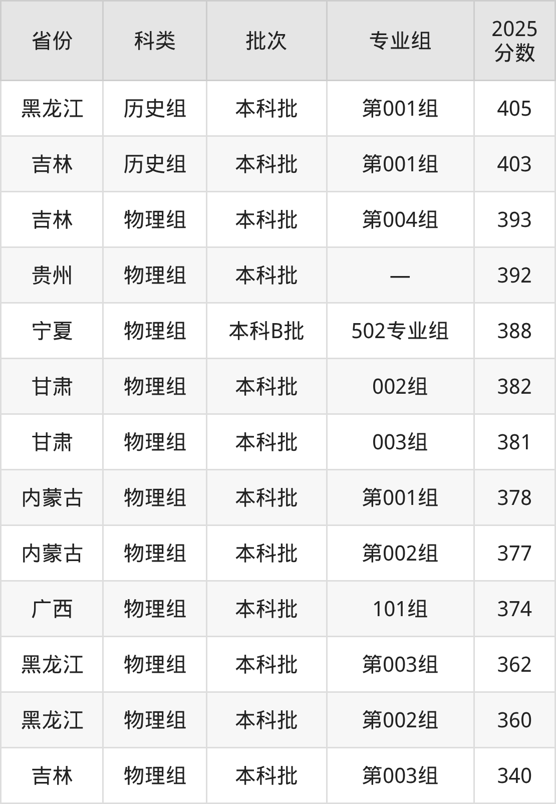 北京工业大学耿丹学院在市外招生的最低分为340分,其中吉林地区物理组考生上北京工业大学耿丹学院的分数门槛最低,考生成绩达本科线即可报考。其次是黑龙江物理组考生,上北京工业大学耿丹学院至少要超本科线0分(360分)。