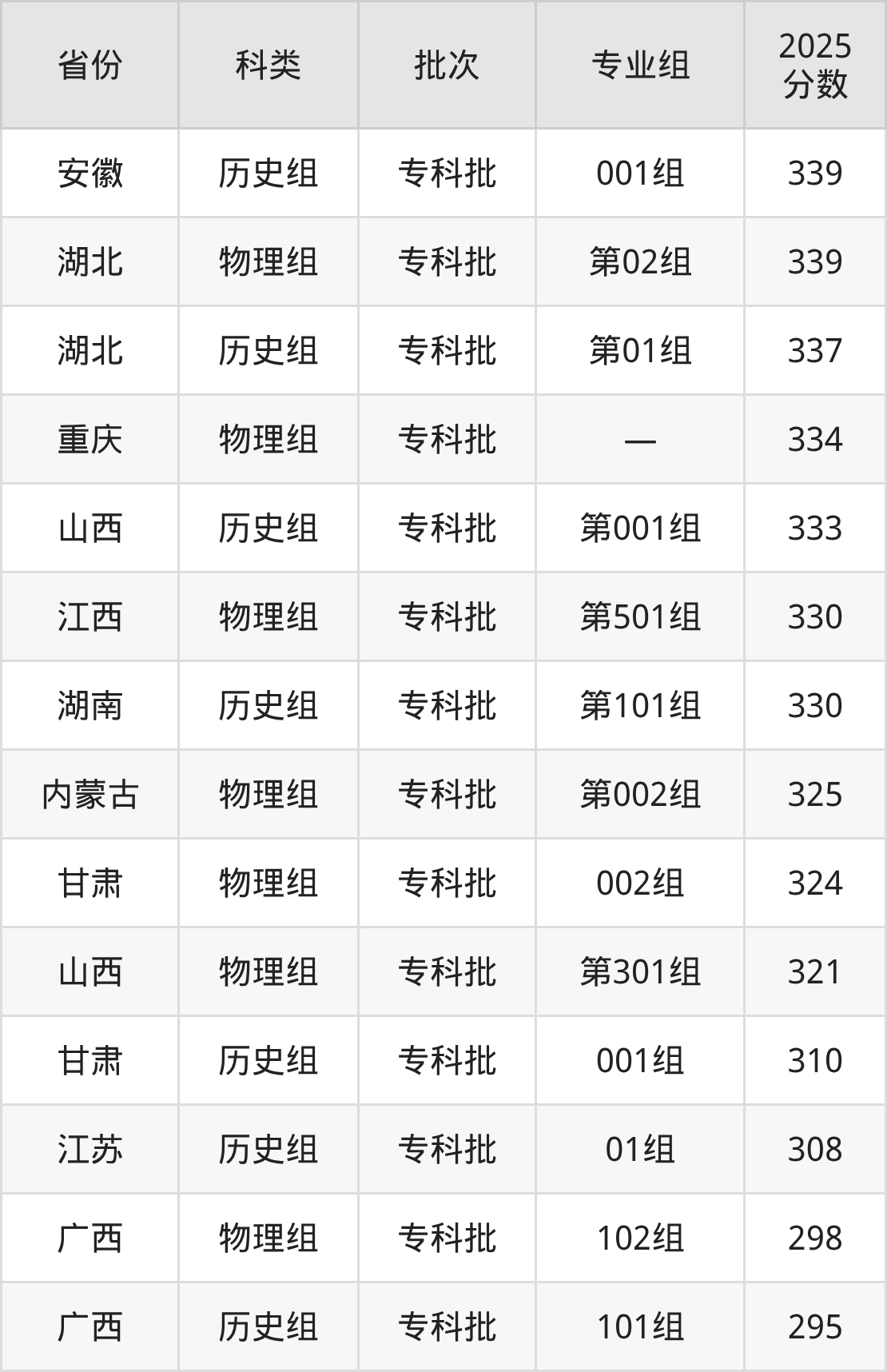 下面是河南地矿职业学院2025年在全国各省的录取分数线一览表,供参考: